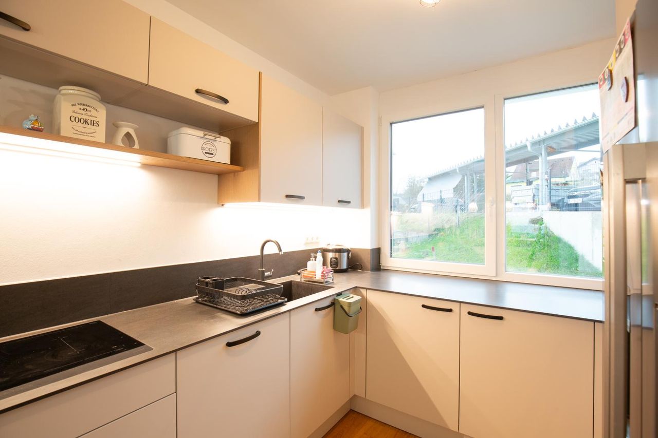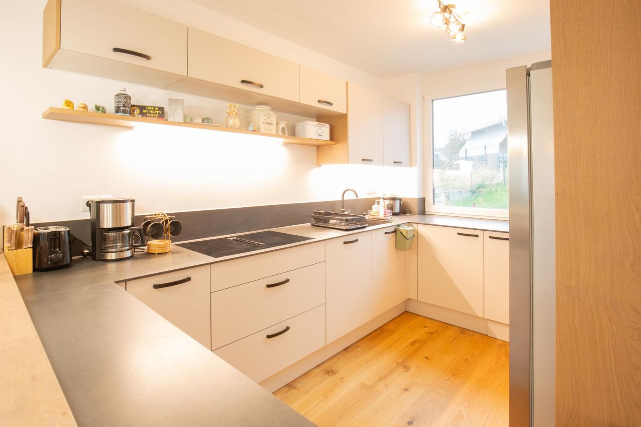 Errichtet im Jahr 2022 und 2024 bezogen, begeistert das Haus mit geschmackvoller Gestaltung auf zwei Wohnebenen, einem sonnigen Garten samt Terrasse sowie durchdachten Details wie einer hochwertigen Fußbodenheizung, Klimageräten, elektrischen Raffstores und Design-Bädern, die sofort ins Auge stechen. Die Eigentümer haben hier ein Zuhause mit viel Herz und Stil geschaffen – das spürt man in jedem Raum.