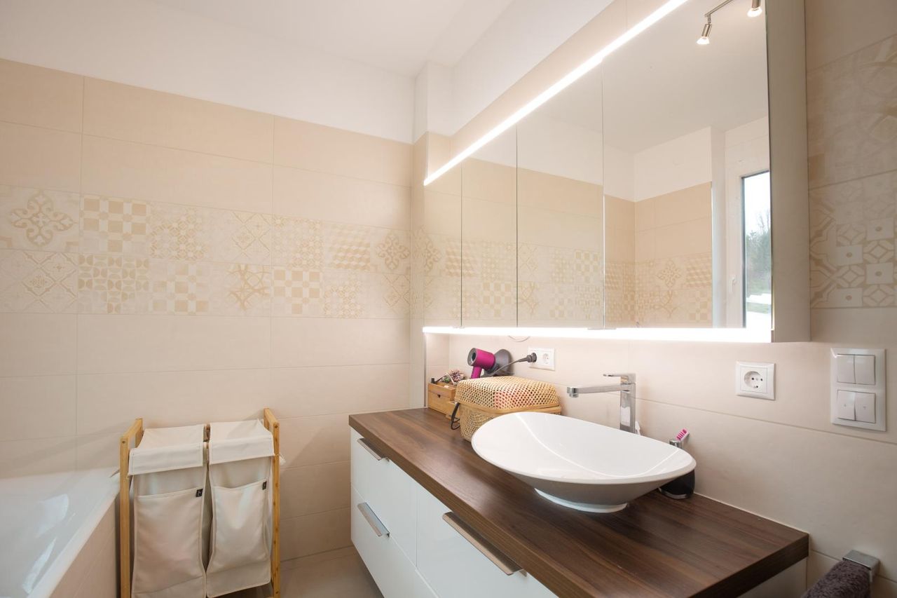 - Großzügiges Badezimmer mit Badewanne
