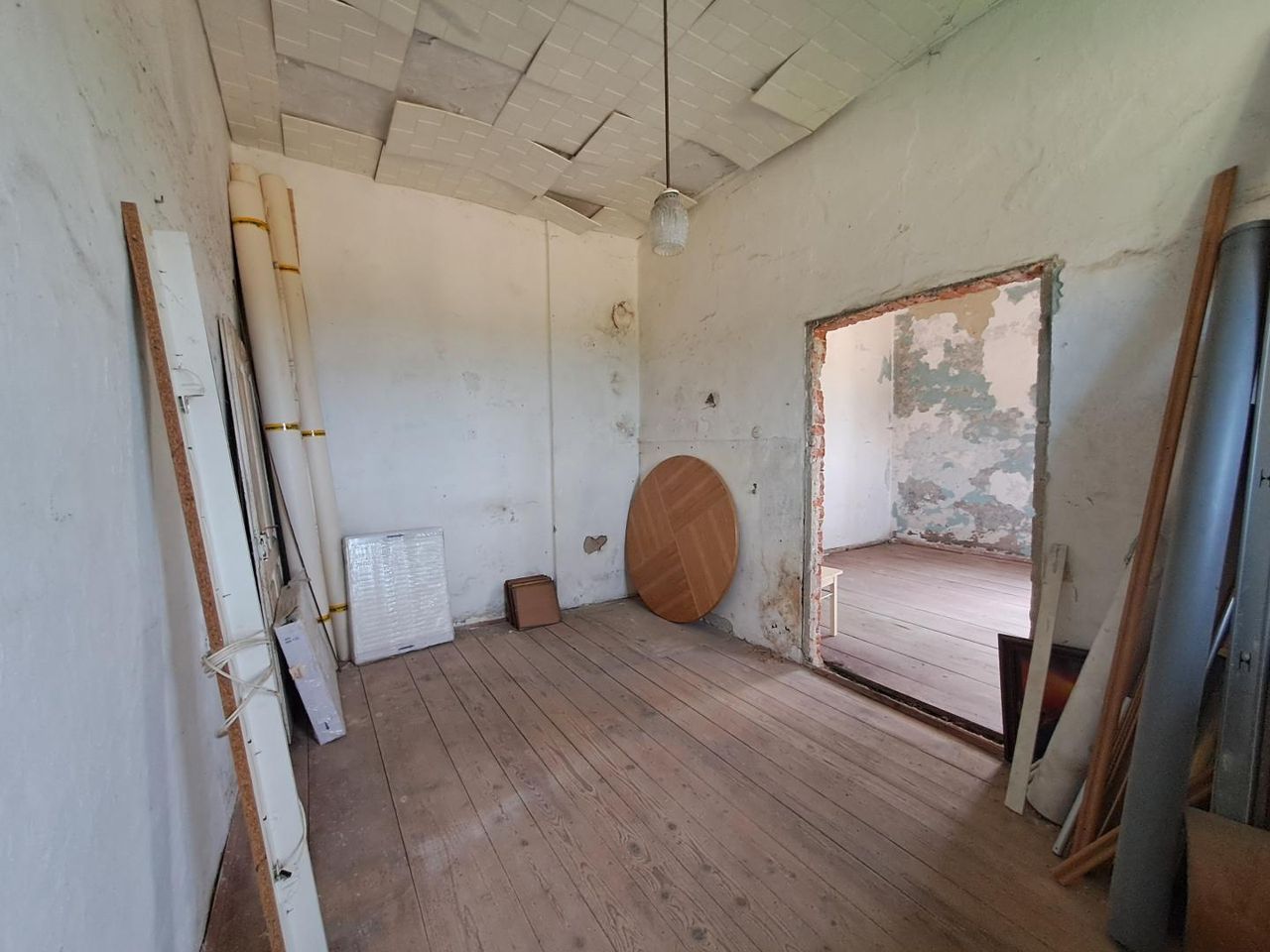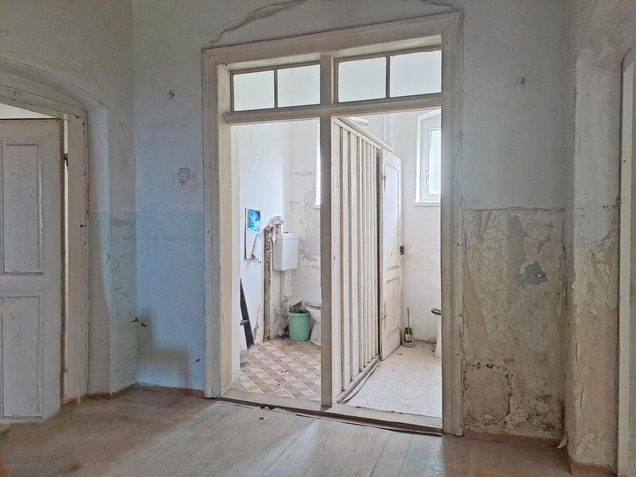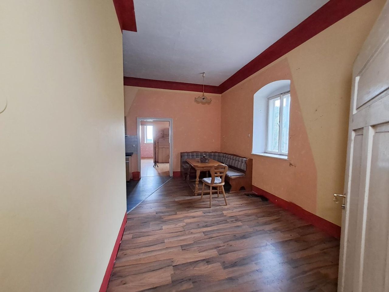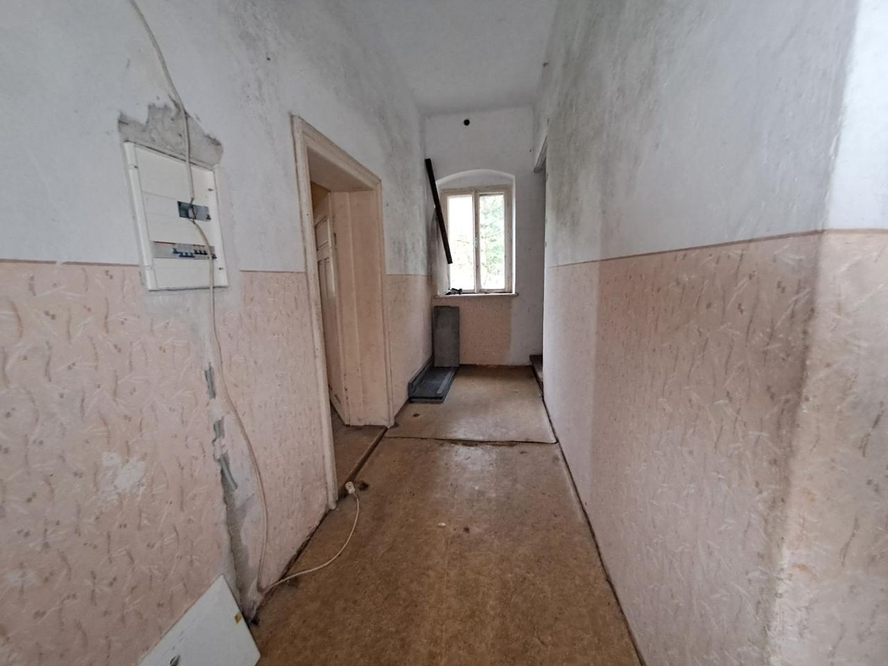 • Teilweise begonnene Sanierungsarbeiten (Fenster, einzelne Räume im Rohbauzustand)
