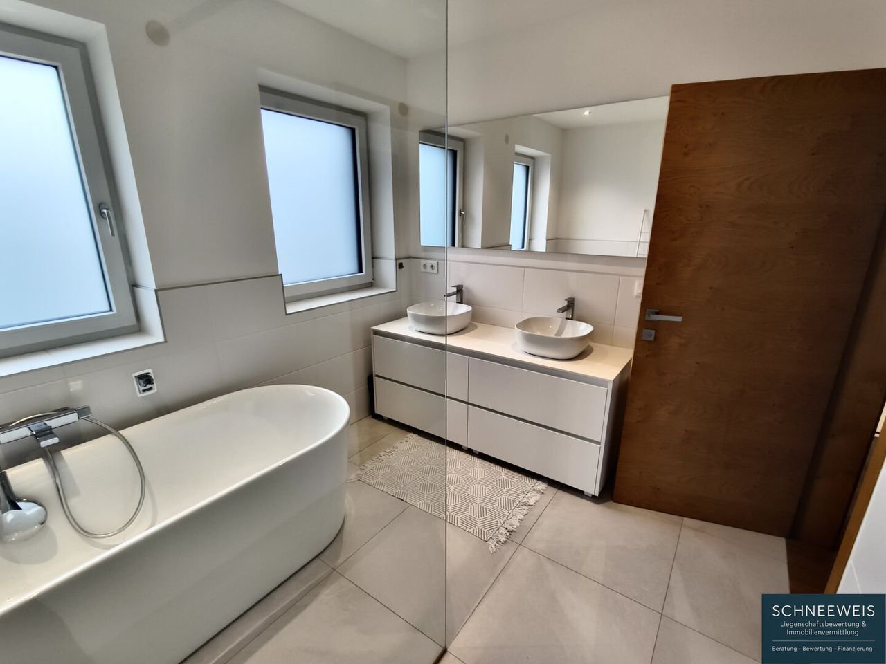Das neuwertige und sehr hochwertige Einfamilienhaus besticht bereits auf der ersten Wohnebene durch einen äußerst durchdachten Grundriss. Hier steht Ihnen unter anderem ein Gästezimmer mit zusätzlichem Badezimmer zur Verfügung. Gerade im fortgeschrittenen Alter lässt sich die Liegenschaft dadurch auch weiterhin unkompliziert bewohnen.