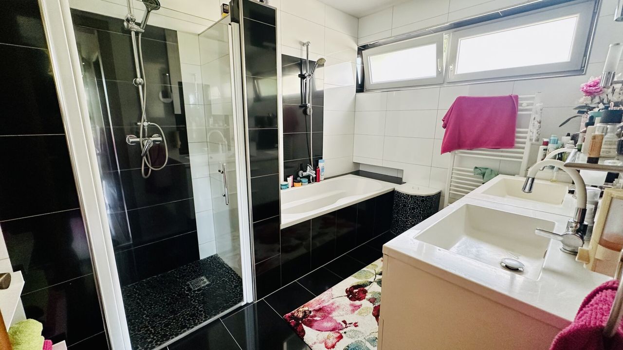 Das Badezimmer ist nicht nur funktional, sondern auch ein Ort der Entspannung. Mit einem Fenster, einer