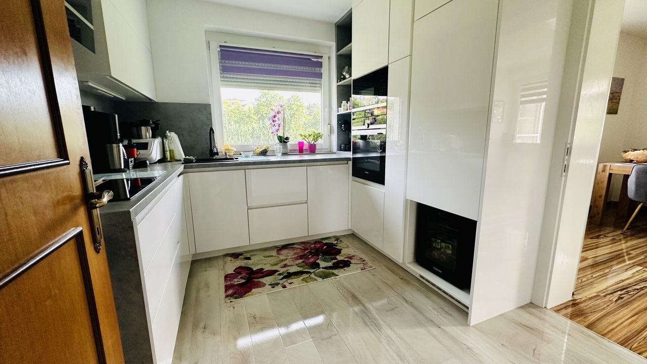 Die liebevoll gestaltete Einbauküche wird zum Herzstück Ihrer neuen Wohnwelt und lädt mit viel Stauraum und hochmodernen Geräten zum Kochen und Verweilen ein.