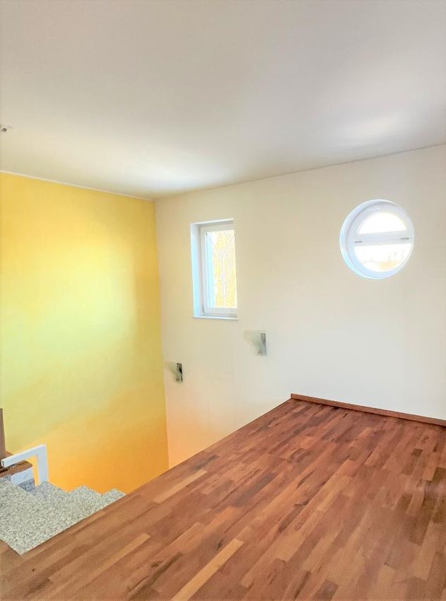Das Haus ist fast fertig ausgebaut; Badezimmer, Terrasse und Obergeschoß können noch gestaltet werden; für den Einbau eines Kaminofens im Wohnzimmer wurden die Vorkehrungen mit einem zweiten Zug und Bodenverstärkung bereits getroffen - individuelle Gestaltungsmöglichkeiten sind auf jeden Fall vorhanden.