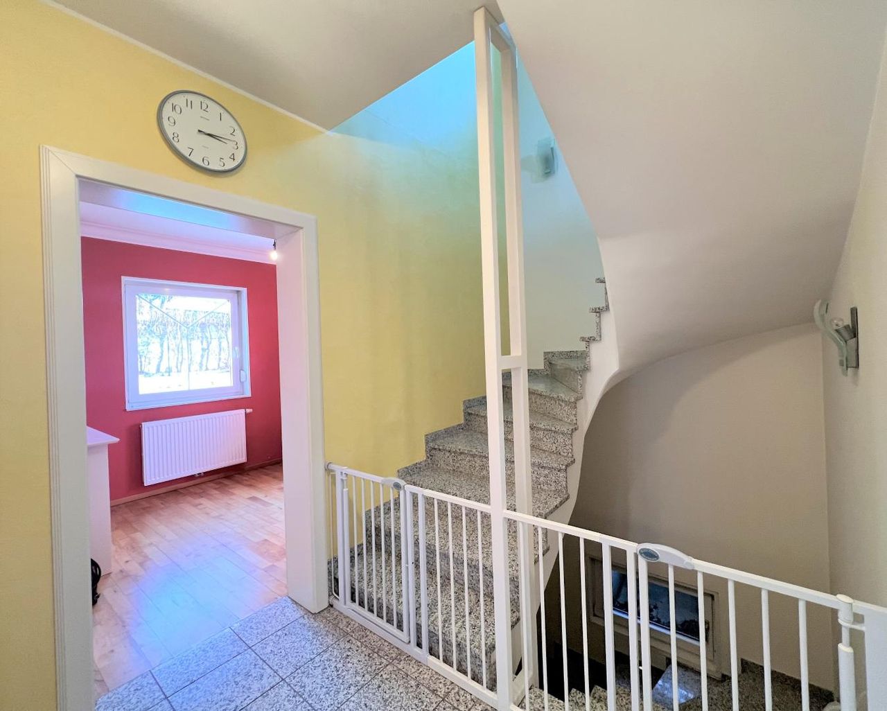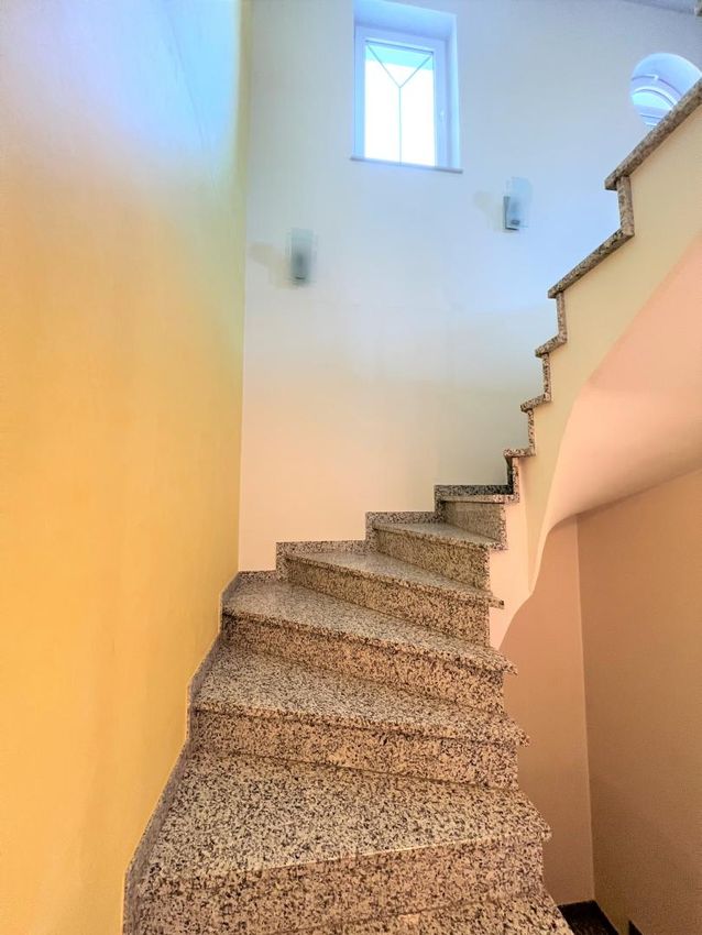Im Untergeschoß befinden sich die Garage mit anschließendem Keller/Werkstattraum, ein Technikraum, ein Wirtschaftsraum, ein weiterer Vorratskeller und ein zusätzlicher Ausgang mit Aufgang in den hinteren Gartenbereich. Durch die Garage kann man bequem Einkäufe nach Hause bringen, gleich im Keller lagern oder in die Küche nach oben bringen.