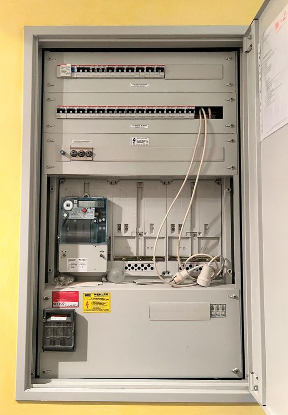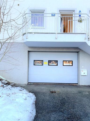 In der hauseigenen Garage können je nach Fahrzeuggröße zwei Fahrzeuge parken und zusätzlich zwei Fahrzeuge direkt vor der Garage; dieser Platz ist durch einen Boller gesichert.