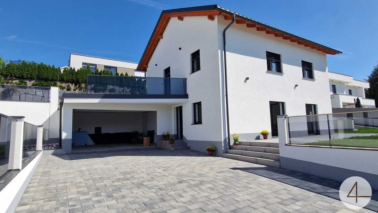 - Obergeschoß: 4 Schlafzimmer , Tür auf eine Terrasse 23 m2, Vorraum, Badezimmer, WC,