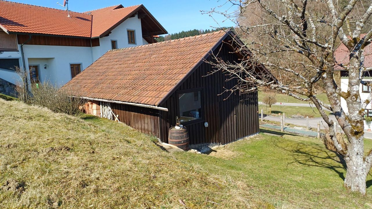 Eine große Doppelgarage mit elektr. Toren und Massivdecke und eine zusätzliche Hütte mit Werkstatt und Lagerraum gehören ebenfalls zur Liegenschaft. Der intakte Stadel würde sich sowohl als zusätzlichen Lagerraum oder für eine Tierhaltung anbieten.