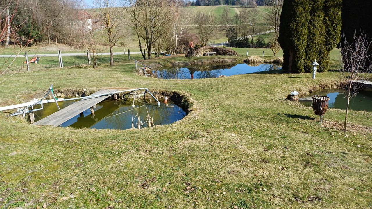 Das Highlight ist aber zweifelsfrei der Garten und die angelegten Fischteiche mit einer kleinen Hütte für gemütliche Stunden.