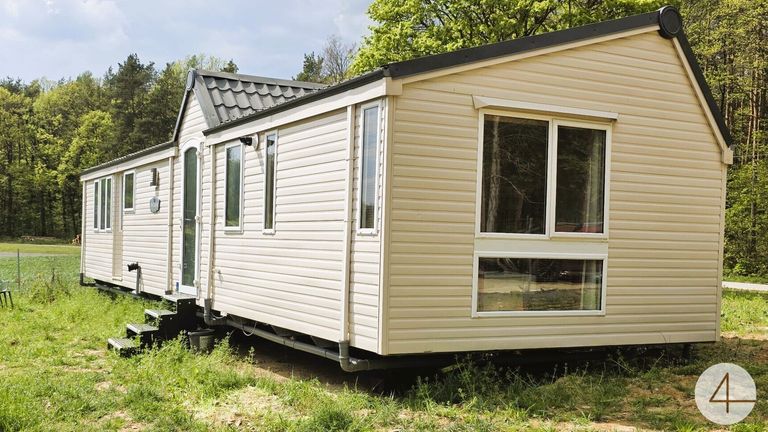 Möbliertes Tinyhouse / Mobilheim ( ca. 12 x 4 Meter, ca. 45m2 Wohnfläche) mit rund 400m² Eigengrund