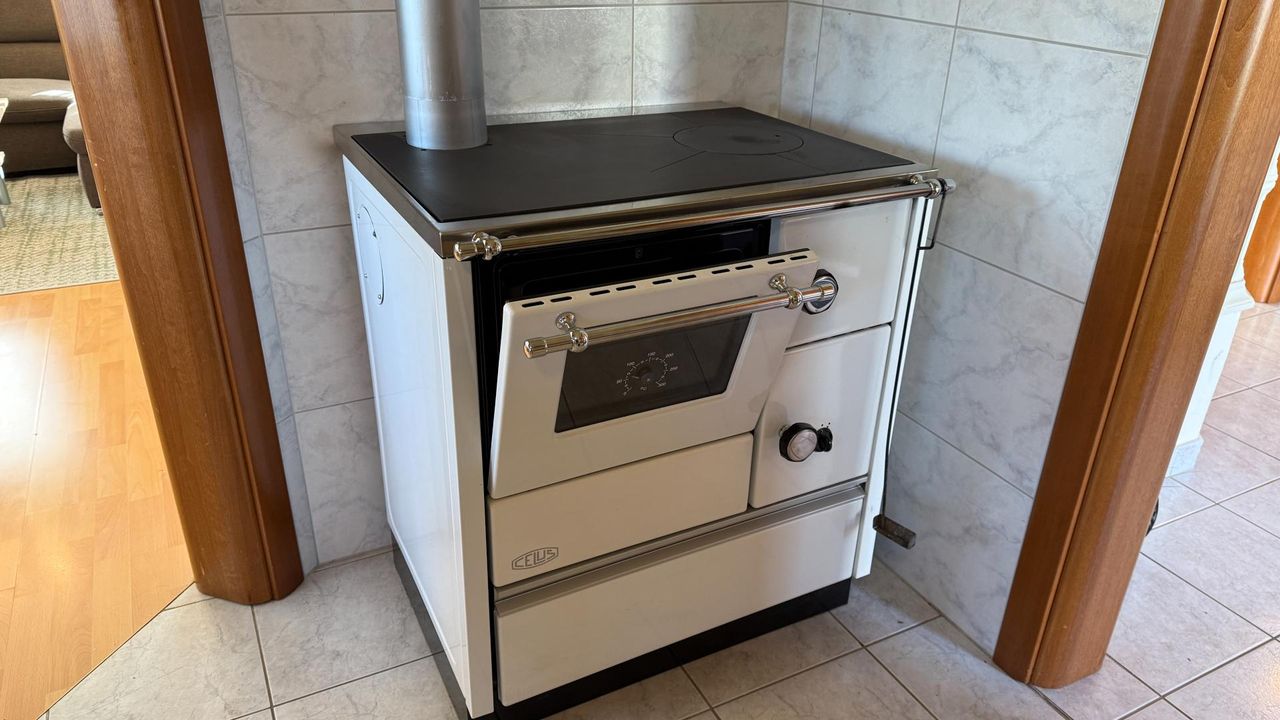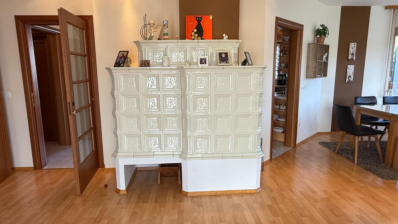 Das Haus wird über eine Elektroheizung beheizt. Zusätzlich steht ein zentraler Kachelofen zur Verfügung, der vom Vorraum aus befeuert wird und sowohl diesen Bereich als auch das Wohnzimmer angenehm wärmt. Die Wärme verteilt sich über die Galerie auch ins Dachgeschoss.