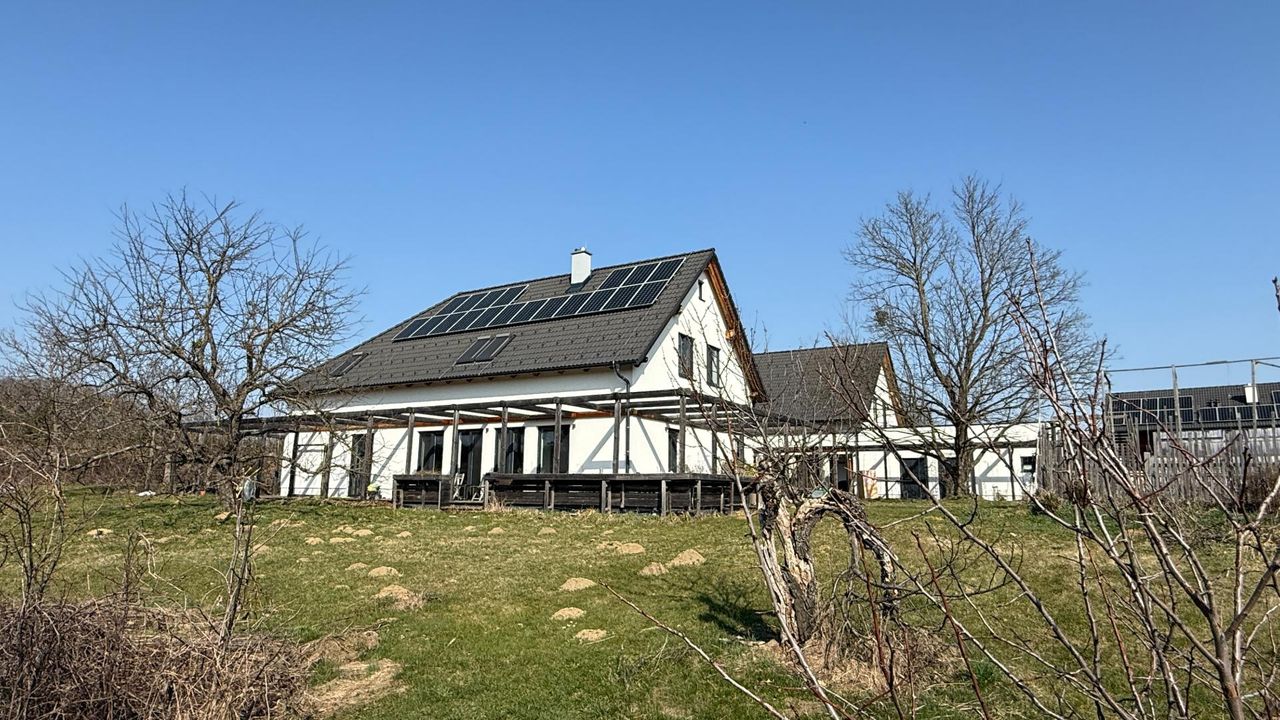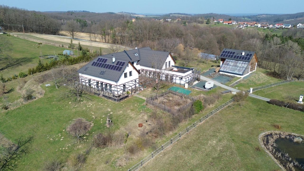 Architektenhaus mit außergewöhnlichem Potenzial in traumhafter Aussichtslage – Südburgenland In absoluter Ruhelage auf einer sonnigen Hügelkuppe von Großmürbisch im Südburgenland präsentiert sich dieses außergewöhnliche Architektenhaus als wahres Raum- und Nutzungsobjekt. Umgeben von Natur, mit weitem Blick über die malerische Landschaft, verbindet diese Immobilie großzügiges Wohnen, Arbeiten und höchste Lebensqualität. Das 7.643 m² große Grundstück setzt sich aus Bauland (rund um das Wohnhaus) sowie überwiegend aus Grünland zusammen – ideal für Naturliebhaber, Selbstversorger oder Menschen mit dem Wunsch nach Rückzug und Weite. Architektur & Konzept Das im Jahr 2018 errichtete Wohngebäude wurde von Architekten in Anlehnung an einen bäuerlichen Dreikanthof geplant....