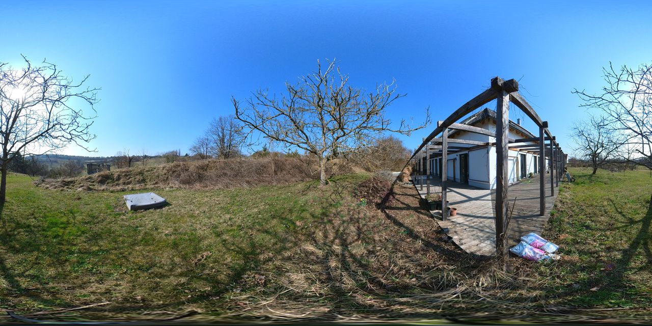 Die Flächen rund um das Haus wurden naturnah gestaltet, mit Wiesen, Sträuchern und Obstbäumen. Besonderes Augenmerk lag auf einem großzügigen Nutzgarten zum Anbau von Gemüse und Kräutern.