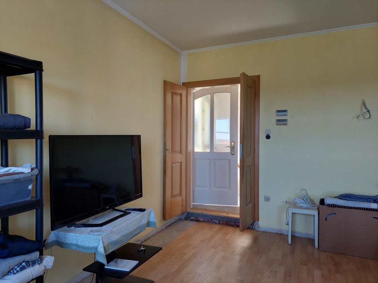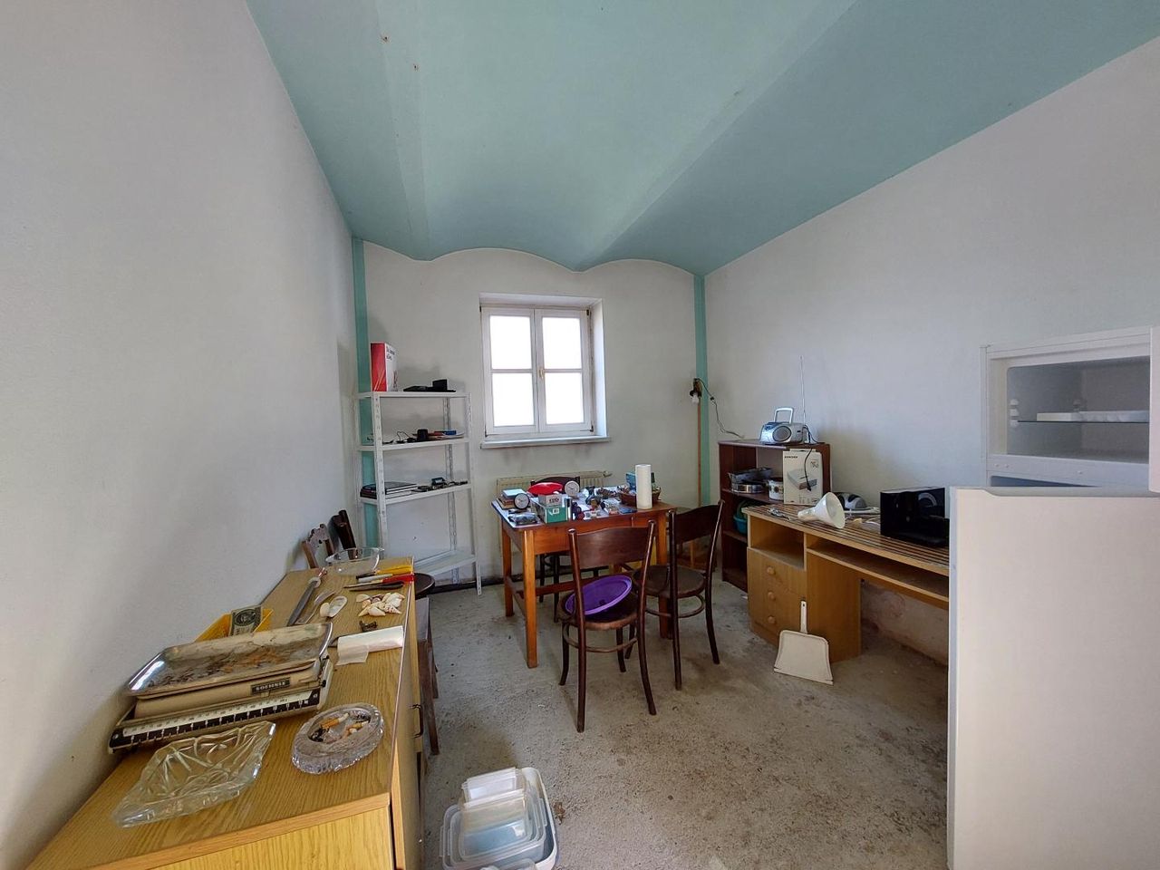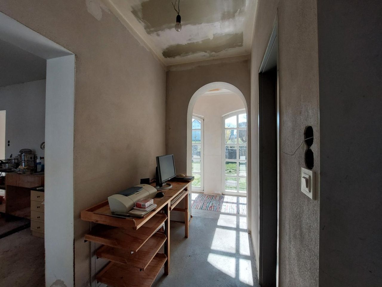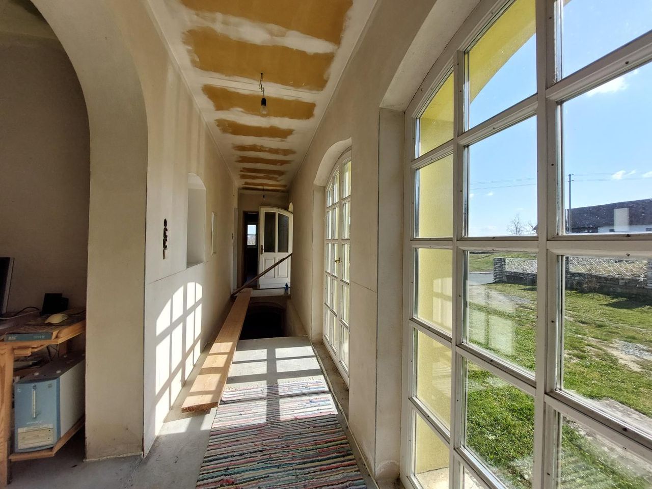 Die ebenerdige Wohnfläche von ca. 135 m² bietet ein angenehmes Raumgefühl mit hohen Decken und teilweise ausgeführten Gewölbedecken, die dem Haus eine besondere architektonische Note verleihen. Zur Verfügung stehen drei Zimmer sowie eine Wohnküche mit traditionellem Küchenherd. Der Vorraum ist großzügig gestaltet und durch seine Helligkeit ein einladender Mittelpunkt des Hauses.