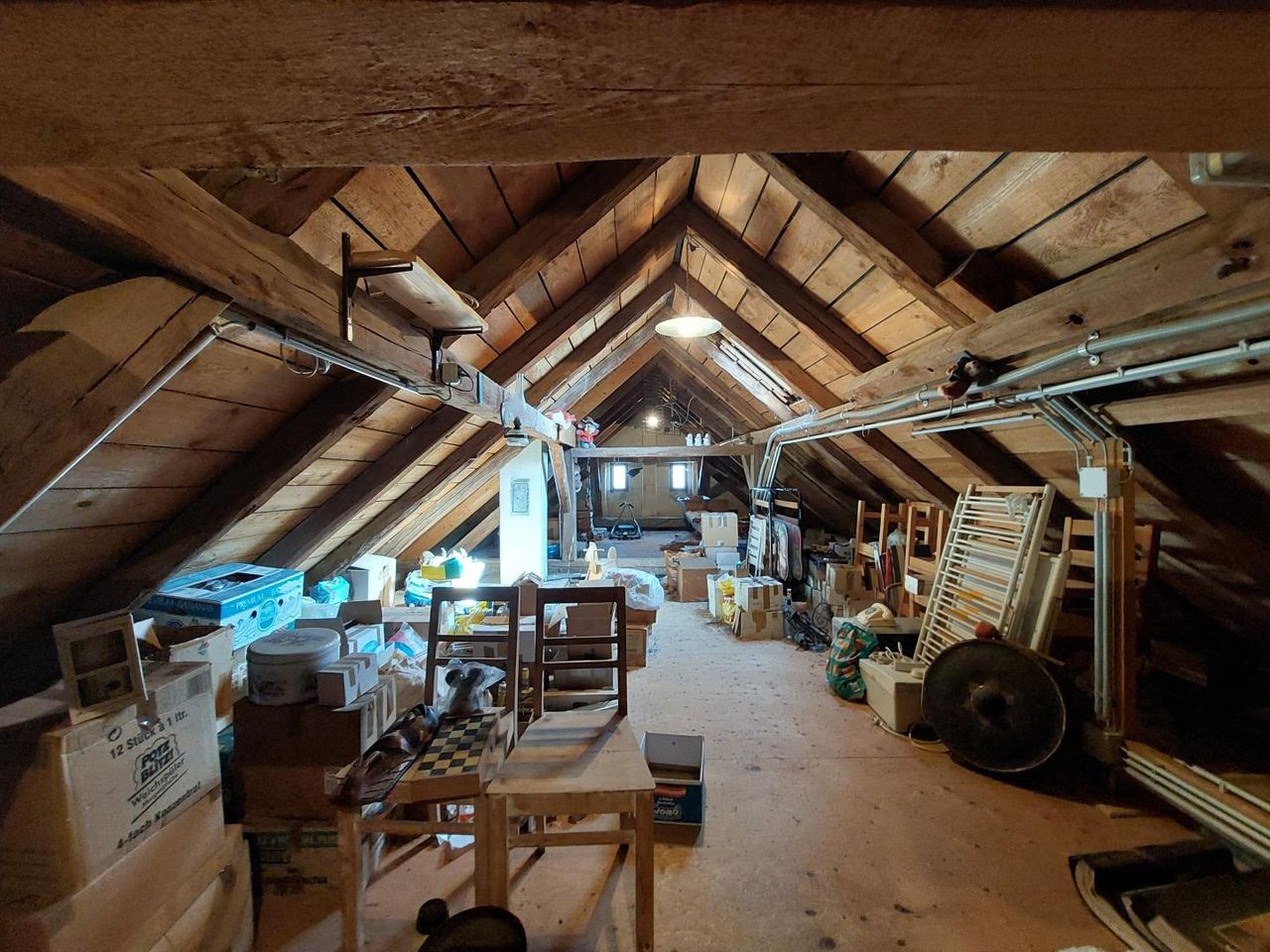 Der ca. 36 m² große Ziegelgewölbekeller mit gestampftem Lehmboden bietet nicht nur Stauraum, sondern auch eine besondere Atmosphäre. Über eine Holztreppe erreicht man den geräumigen Dachboden, der zusätzliche Nutz- oder Ausbaureserven eröffnet.