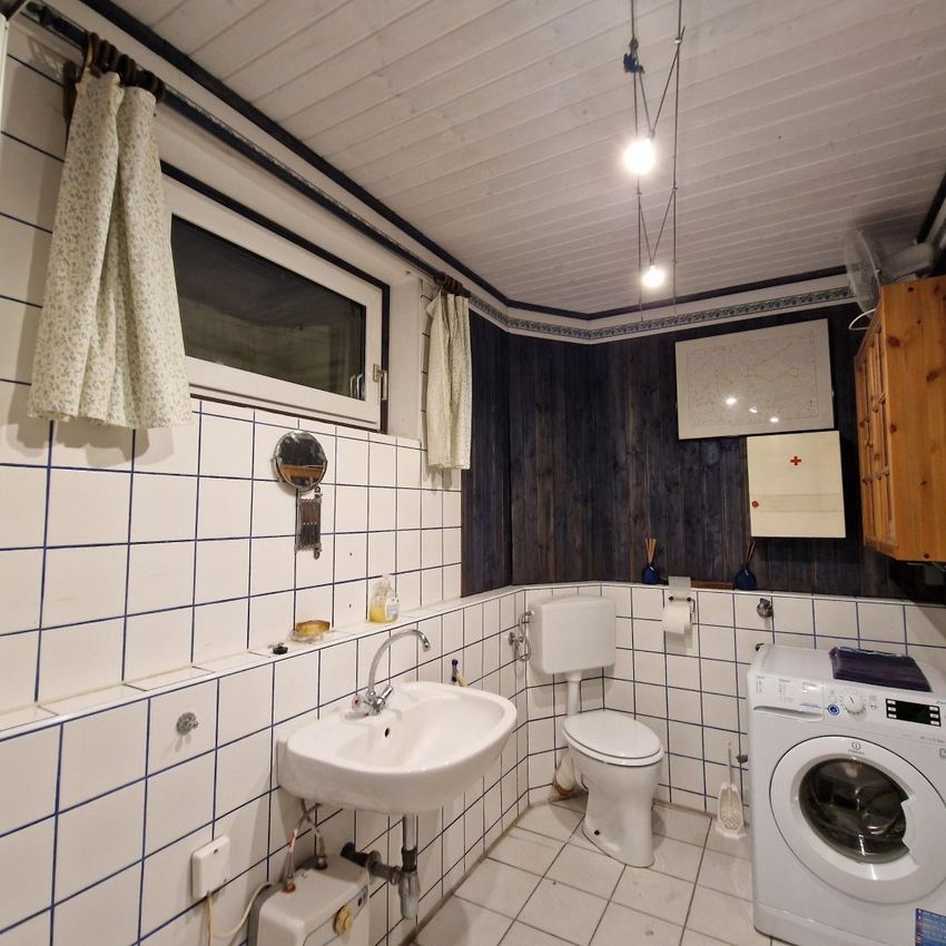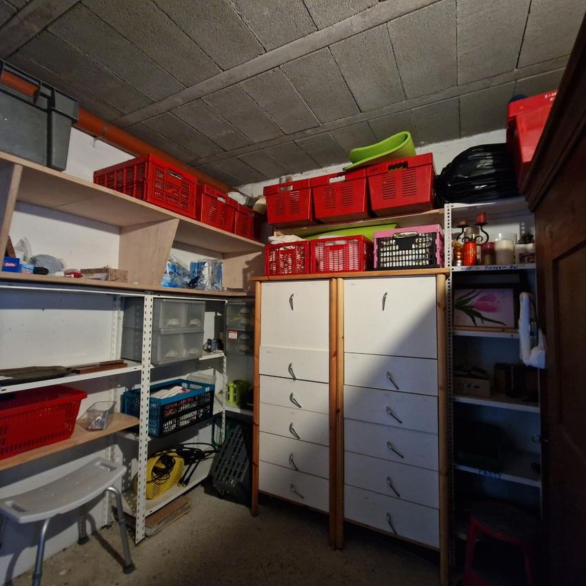 Der Keller mit rund 79 m² Nutzfläche bietet zusätzliche Möglichkeiten und umfasst mehrere Räume, ein weiteres Badezimmer mit WC sowie eine Werkstatt und Lagerräume, die sich ideal für Hobby, Fitness oder Stauraum eignen.