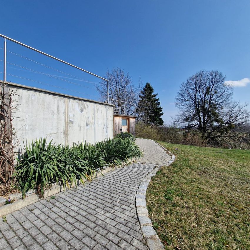 Ein besonderes Highlight ist der Außenbereich, der zu einer privaten Wohlfühl- und Wellnessoase gestaltet wurde. Neben dem Naturbadeteich stehen ein Jacuzzi und eine Sauna mit Duschbereich zur Verfügung – perfekte Voraussetzungen für Entspannung und Erholung im eigenen Zuhause.