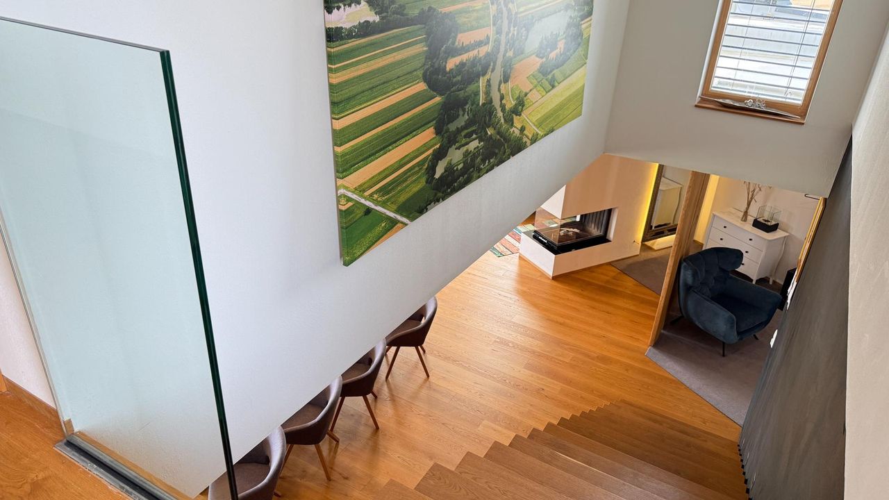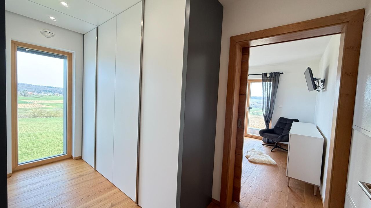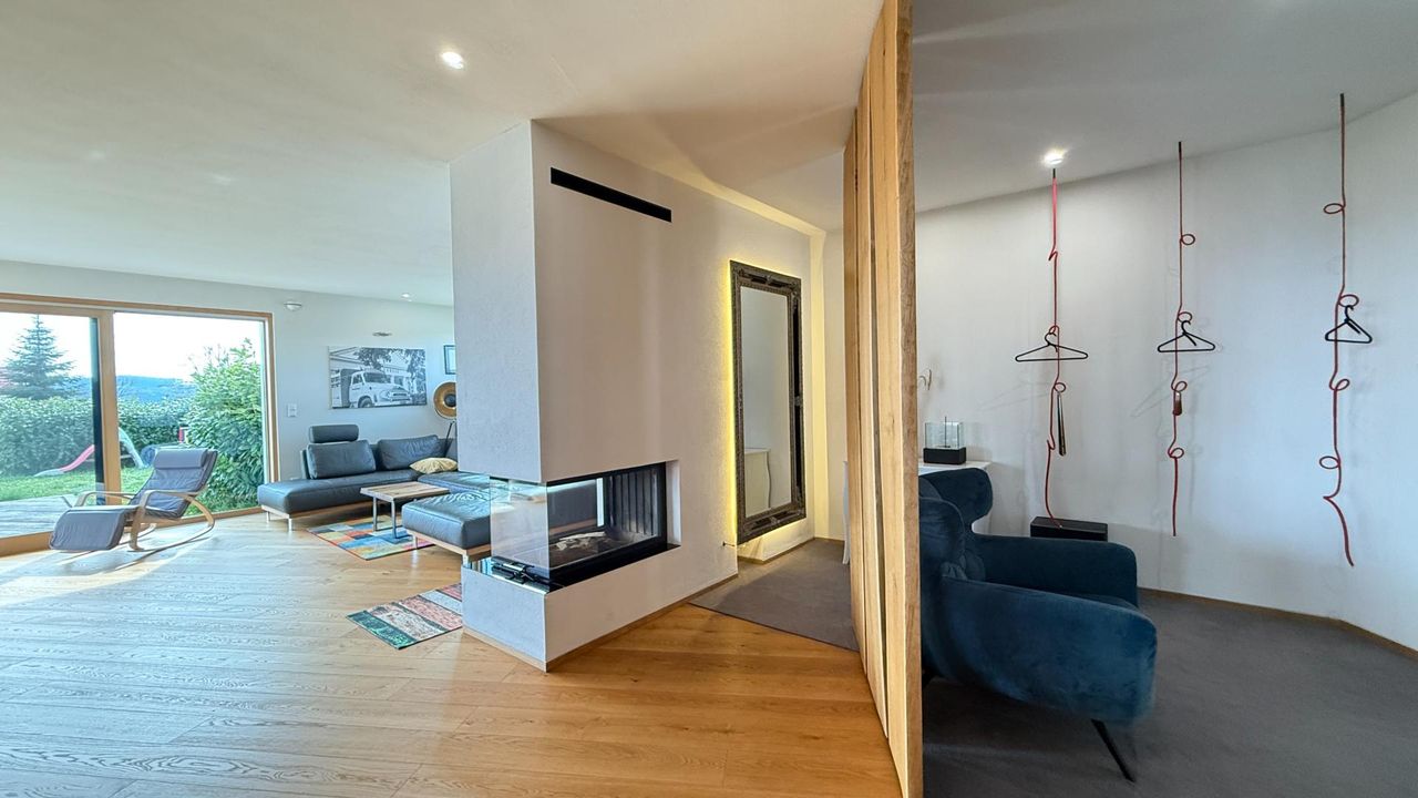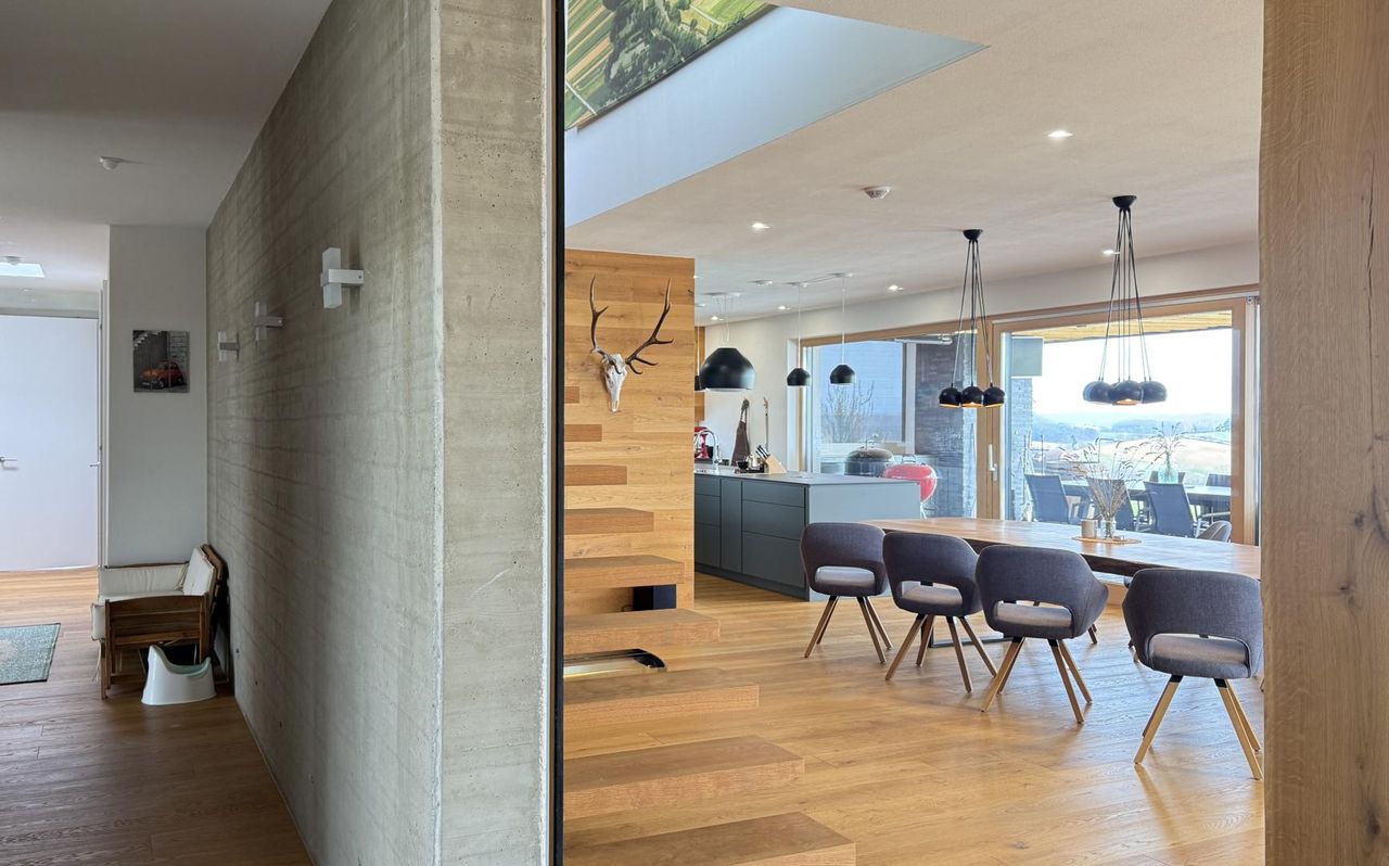 Die in ökologischer Holzriegelbauweise errichtete Liegenschaft verfügt über eine Wohnfläche von ca. 250 m² sowie eine Gesamtnutzfläche von ca. 320 m² und überzeugt durch eine durchdachte Raumaufteilung sowie lichtdurchflutete Wohnbereiche.