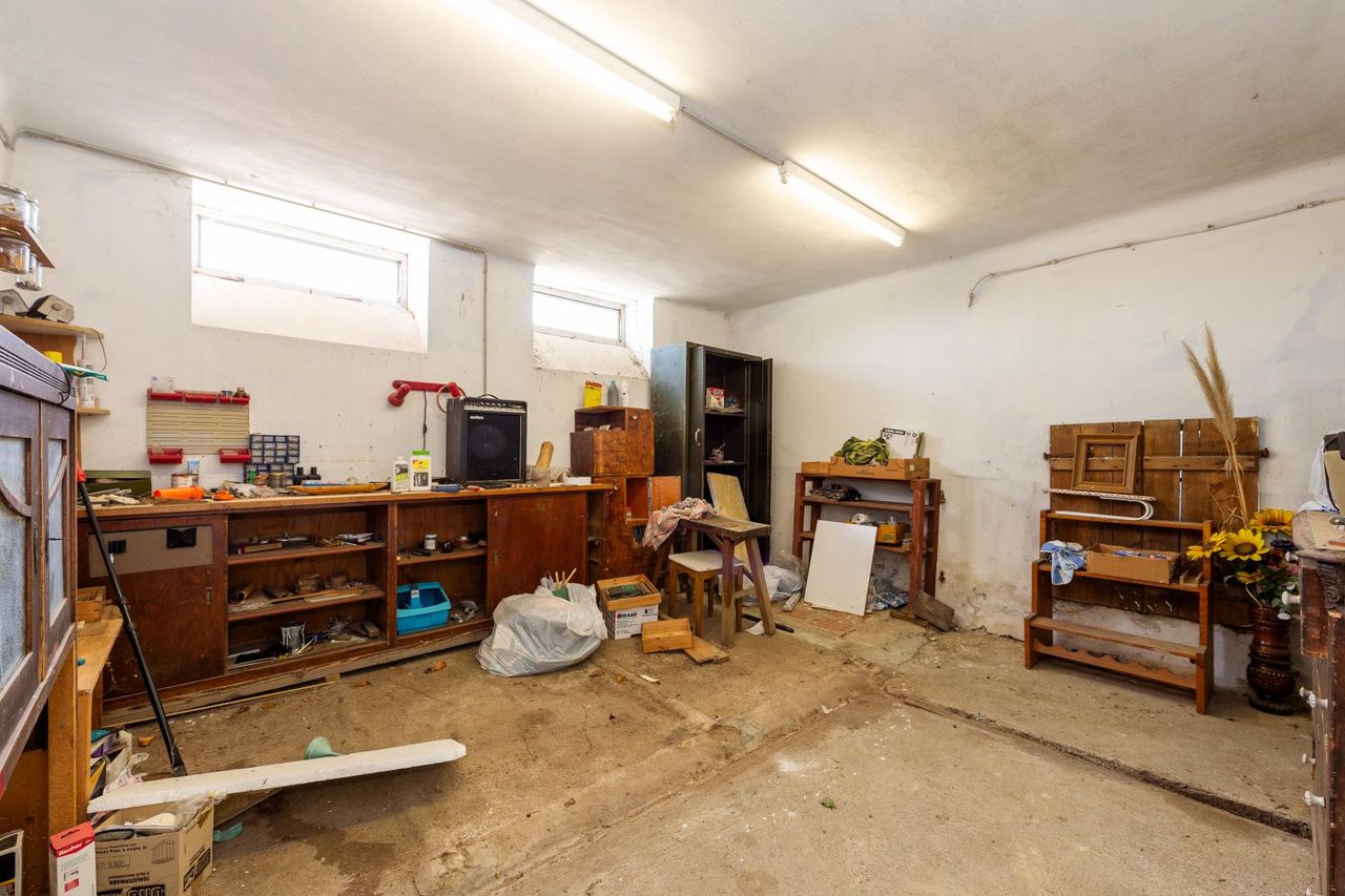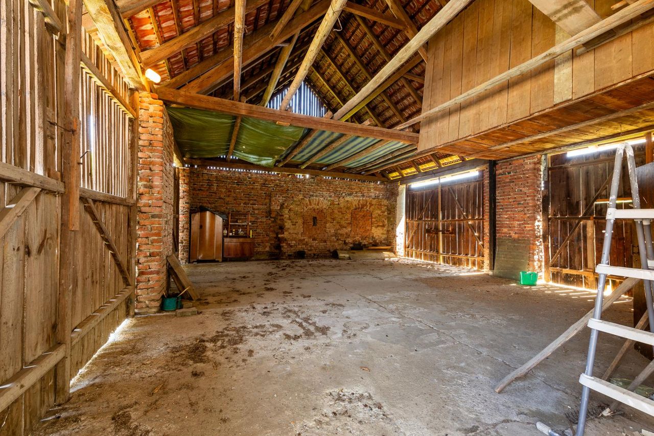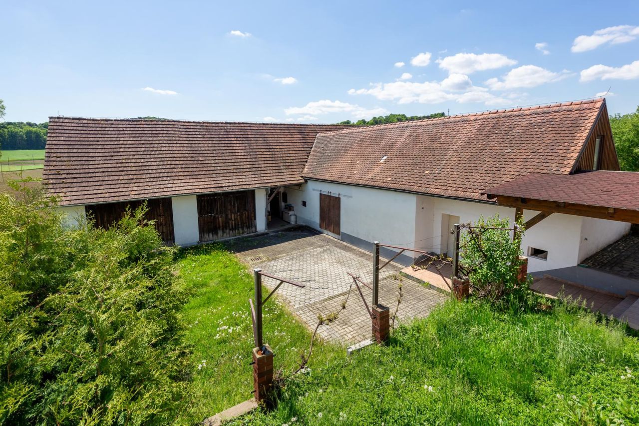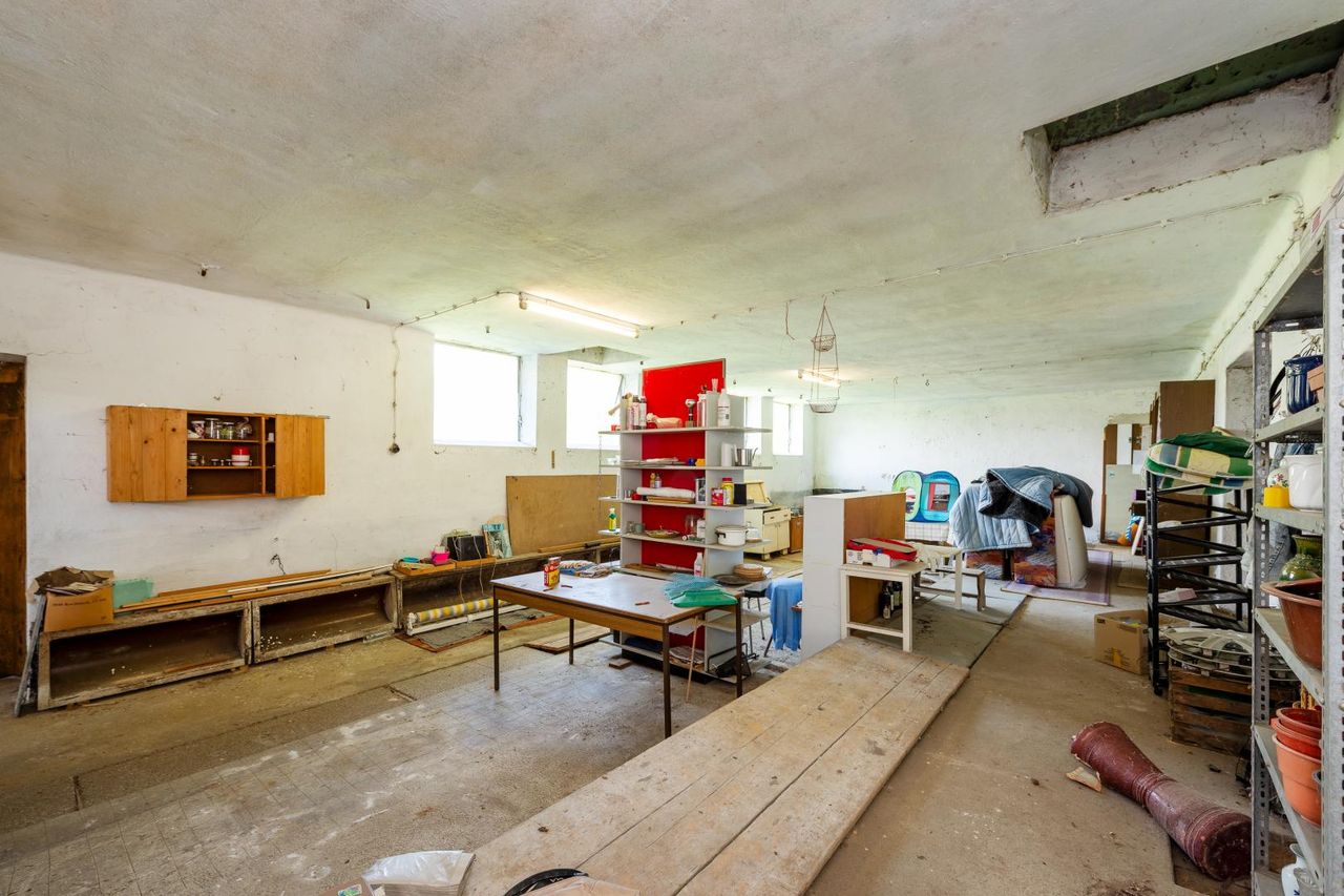 Angrenzend an das Wohnhaus erstreckt sich ein massives, hofartig angeordnetes Nebengebäude, das als Werkstatt, Lager, Atelier oder Stall genutzt werden kann – solide gebaut, vielseitig verwendbar. Der befestigte Innenhof bietet nicht nur praktische Nutzfläche, sondern auch einen geschützten Außenraum mit ländlichem Flair.