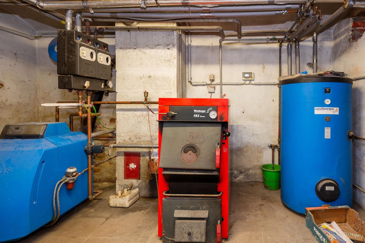 Die Beheizung erfolgt über eine Kombination aus Öl-Zentralheizung und Holzöfen – passend zum Charakter des Hauses und flexibel in der Anwendung. Zusätzlich wurde eine Solaranlage installiert, die Warmwasser aufbereitet.
