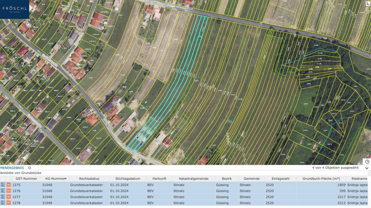 Charmantes Einfamilienhaus mit moderner Ausstattung Dieses wunderschöne Einfamilienhaus, erbaut ab 2012 und bezugsfertig seit 2013, bietet auf zwei Etagen großzügigen Wohnraum und modernen Komfort. Das Erdgeschoss wurde in Massivbauweise errichtet, während das Obergeschoss als Griffner-Fertighaus ausgeführt ist. Im Obergeschoss befinden sich drei gemütliche Zimmer, ein praktischer Schrankraum, ein stilvolles Badezimmer, ein separates WC und ein heller Gang. Das Erdgeschoss besticht durch offene Wohnküche, drei Abstellräume, einladenden Vorraum, Bad/WC, Haustechnikraum und eine geräumige Garage. Das Haus ist über die südseitig anschließende Grabenstraße bequem erreichbar. Die Geschosse sind durch eine elegante Treppe miteinander verbunden. Ausstattung: Heizung und Warmwasser: Die Beheizung erfolgt über eine effiziente Erdwärmeanlage (Vaillant) mit einem Pufferspeicher von ca. 800 Litern. Im gesamten Haus sorgt die Fußbodenheizung für wohlige Wärme. Zusätzlich gibt es in der Wohnküche einen gemütlichen Heizkamin für feste Brennstoffe. Anschlüsse: Das Haus ist vollständig erschlossen mit Strom-, Wasser-, Kanal-, Telefon- und Internetanschluss. Außenanlagen: Eine überdachte Terrasse im Erdgeschoss lädt zum Verweilen ein, während die Terrassen im Obergeschoss mit WPC-Belägen ausgestattet sind. Der Vorgarten ist liebevoll begrünt, und die Zufahrt zur Garage ist asphaltiert und beleuchtet. Ein Grillplatz und eine Schotterfläche ergänzen die Außenanlagen. An der Rückseite des Hauses befindet sich eine ebene Fläche mit Holzausgleichsstufen zum angrenzenden Ackerbereich. Ergreifen Sie die Gelegenheit und werden Sie Eigentümer dieses wunderschönen Einfamilienhauses in Stinatz im Südburgenland. Besuchen Sie www.froeschl.estate und entdecken Sie weitere 360º virtuelle Rundgänge sowie die neuesten Objekte! Gerne unternehmen wir auch gemeinsam mit Ihnen geführte virtuelle Besichtigungen! Unsere Angaben basieren auf den Informationen des Eigentümers; Änderungen und Irrtümer sind vorbehalten. Sie möchten den Wert einer Immobilie wissen? Bewertungen professionell und präzise. FRÖSCHL real estate ermittelt den Verkehrswert Ihrer Liegenschaft. Das schriftliche Bewertungsgutachten ist ein umfangreiches Dokument, aus dem dieser hervorgeht. Wir ermitteln abhängig von Ihrem Objekt über den Vergleichswert, den Sachwert oder den Ertragswert, unter Beachtung aller relevanten Unterlagen, den aktuellen Marktwert ihrer Immobilie. Gerne übernehmen wir Bewertungen auch aus anderen Anlässen wie innerfamiliären Angelegenheiten, Erbschaften oder steuerlichen Anforderungen und dergleichen. Wir weisen darauf hin, dass zwischen dem Vermittler und dem zu vermittelnden Dritten ein familiäres oder wirtschaftliches Naheverhältnis besteht. Der Vermittler ist als Doppelmakler tätig. Infrastruktur / Entfernungen Gesundheit