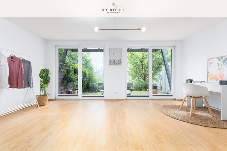 Im Erdgeschoss befindet sich ein zusätzliches Zimmer mit eigenem Zugang zum Garten über die Terrasse – ideal nutzbar als Homeoffice, Fitnessraum oder Hobbybereich.