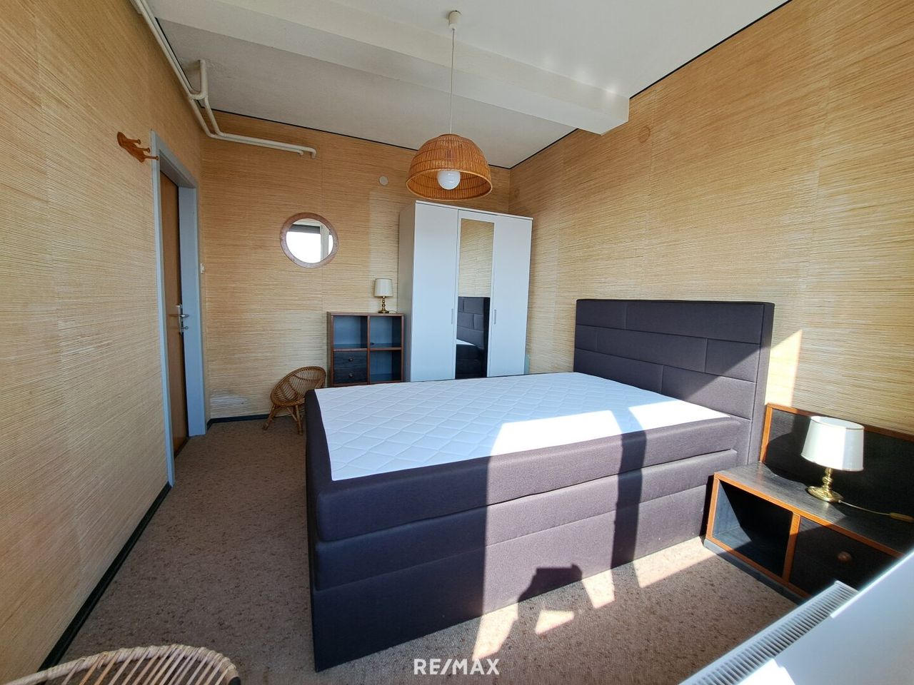 Über eine Wendeltreppe erreichen Sie das Obergeschoss mit einem weiteren Schlafzimmer und dem Badezimmer, das über einen eigenen Balkon verfügt.