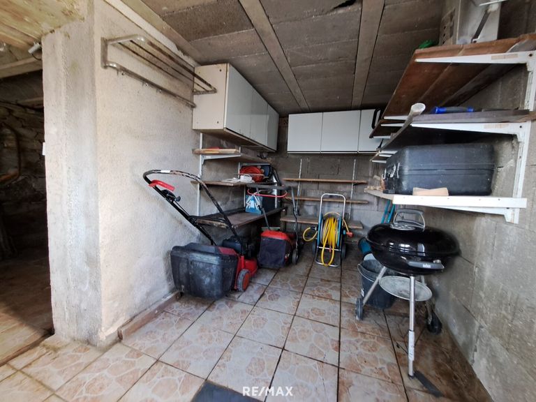 Der Keller bietet praktischen Stauraum mit zwei verbundenen Räumen – einem Bereich für Gartengeräte sowie einem Holzlager, das auch als Weinkeller genutzt werden kann.