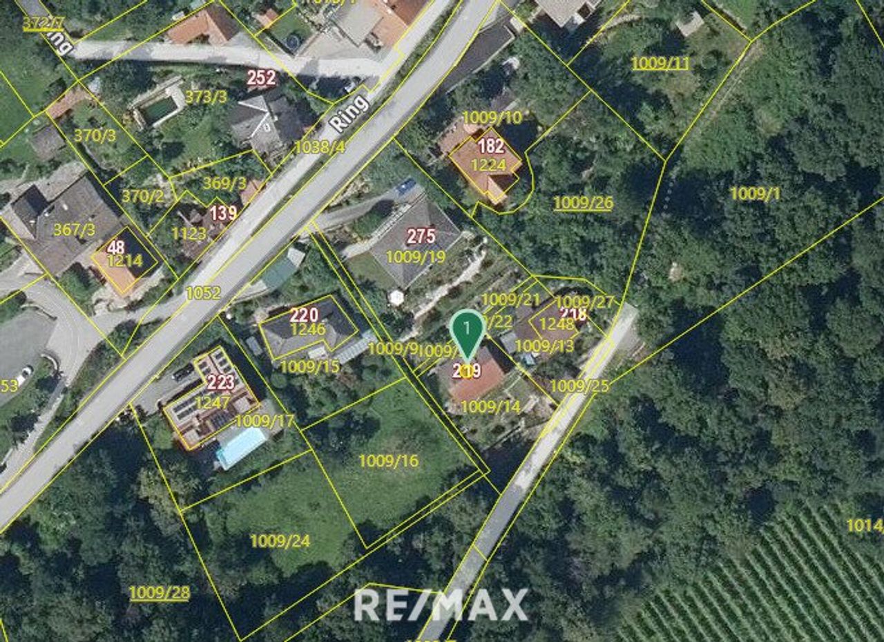 Auf dem Grundstück bestehen zwei Servitutwege: Die Stiege von der unteren Straße wird gemeinsam mit dem Nachbarhaus genutzt. Zusätzlich verläuft entlang der linken Grundstücksgrenze ein weiterer Servitutweg zur Ringstraße, der derzeit nicht genutzt wird.