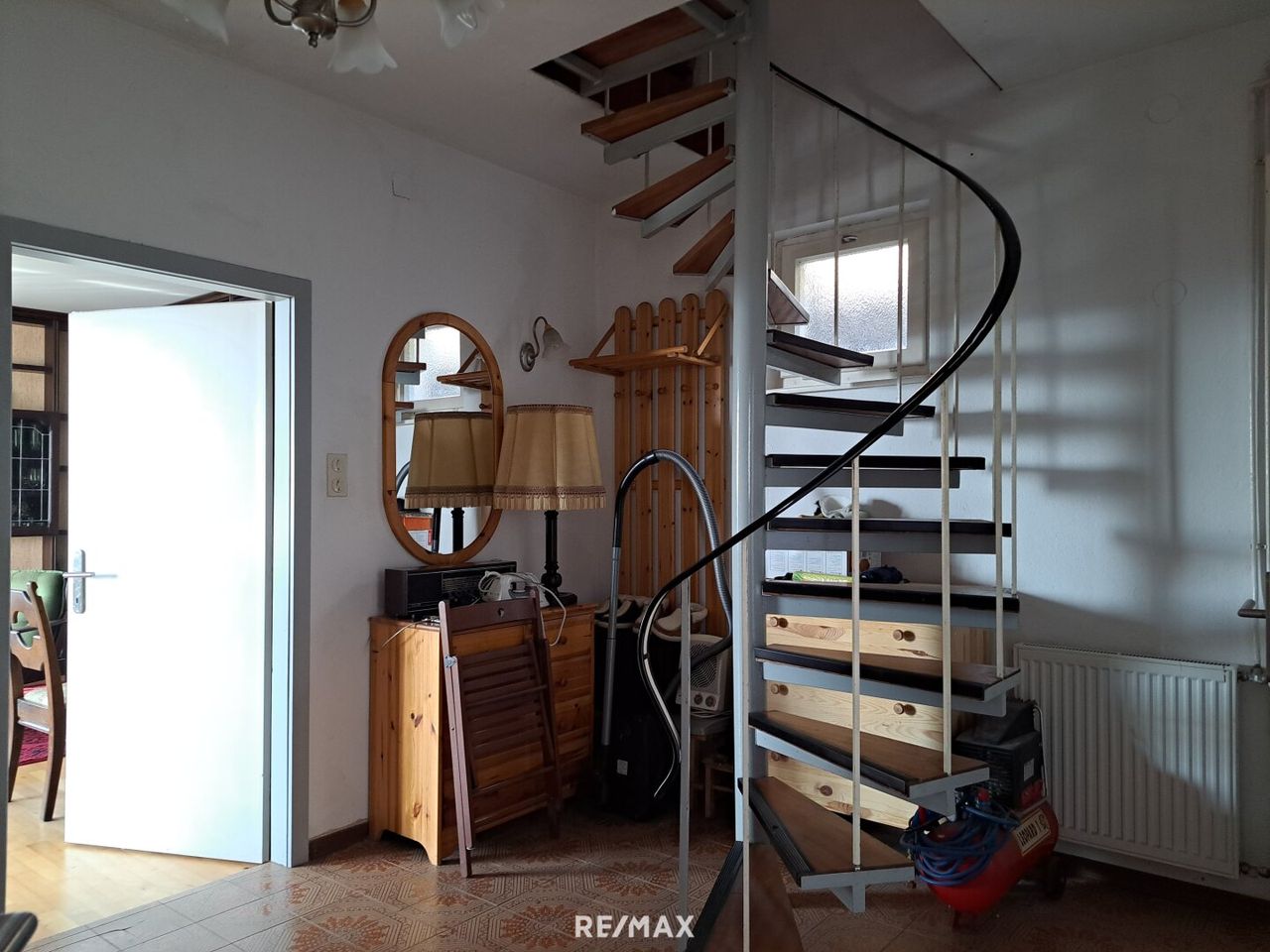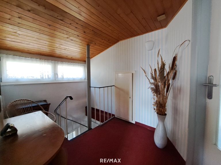 Vom eigenen Carport führt eine Stiege zum Haus. Bereits beim Ankommen spürt man den besonderen Charakter dieser Liegenschaft. Neben dem Zugang befindet sich eine ebenerdige Gartenfläche, die bislang als Gemüsegarten genutzt wurde und vielfältige Möglichkeiten für Hobbygärtner oder eine gemütliche Grünzone bietet.