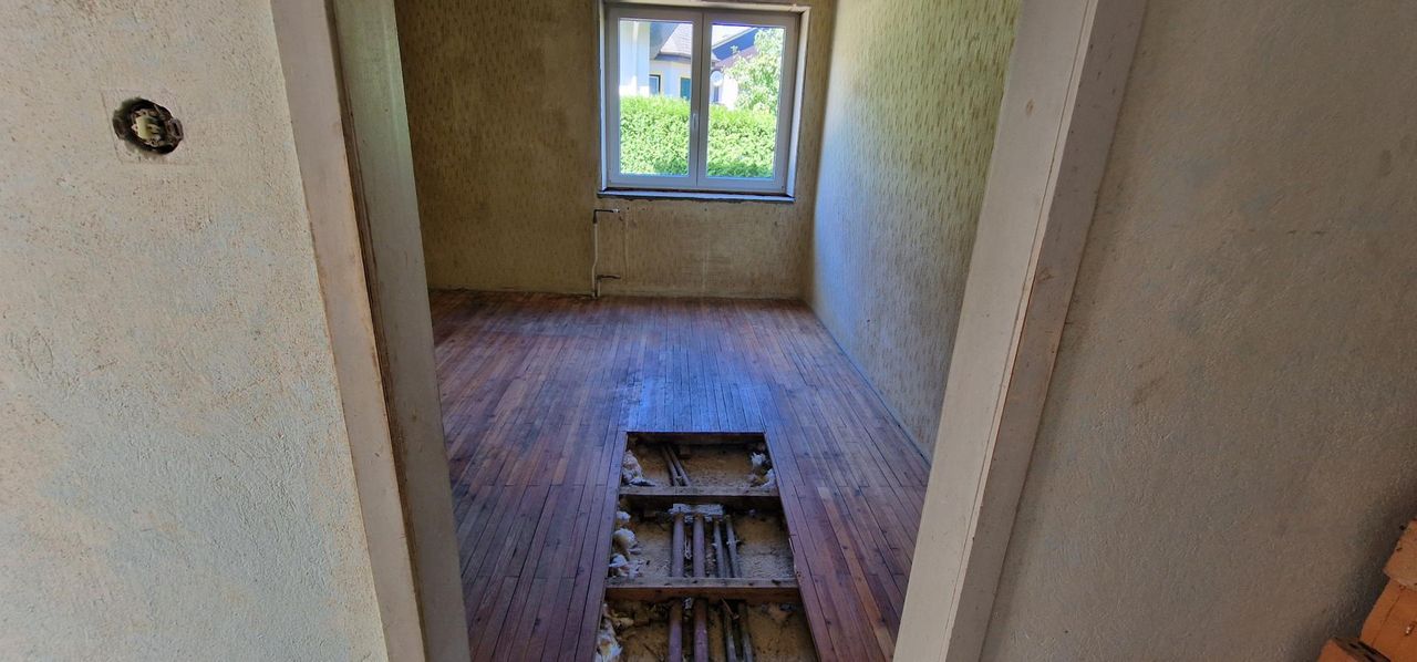 Die wichtigsten Arbeiten sind bereits erledigt: alte Teile entfernt, 3-fach verglaste Fenster (ca. 3 Jahre alt) eingebaut und der Zählerkasten 2024 erneuert.
