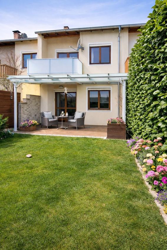 Einziehen. Ankommen. Wohlfühlen. Dieses gepflegte und immer wieder sanierte Reihenhaus verbindet modernes Wohnen mit behaglicher Atmosphäre. Helle Räume, ein durchdachter Grundriss und ein liebevoll gestalteter Garten mit Hochbeet machen dieses Zuhause zu einem Ort, an dem man sofort ankommt. Die überdachte Terrasse erweitert den Wohnraum nach draußen und lädt zu entspannten Stunden in jeder Jahreszeit ein. Über den Eingang gelangt man in den Vorraum mit Garderobe. Von hier geht´s weiter in die Küche mit Essbereich, ergänzt durch eine praktische Speis. Anschließend öffnet sich der Wohnbereich, der mit direktem Zugang zum Garten und zur überdachten Terrasse ein harmonisches Wohngefühl zwischen Innen-...