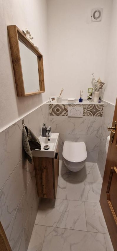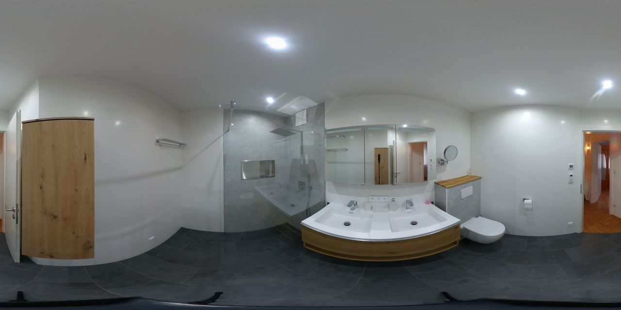 Badezimmer im Obergeschoss komplett neu, inklusive aller Leitungen, Armaturen und Vorwandinstallation