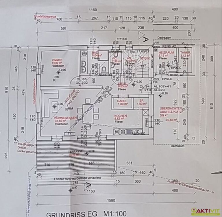 Im Erdgeschoss befinden sich ein großzügiger Wohn- und Essbereich mit rund 31,5 m², eine separate Küche, ein Zimmer, ein Badezimmer, ein WC sowie Nebenräume. Vom Wohnbereich aus besteht ein direkter Zugang zur Terrasse und in den Garten.