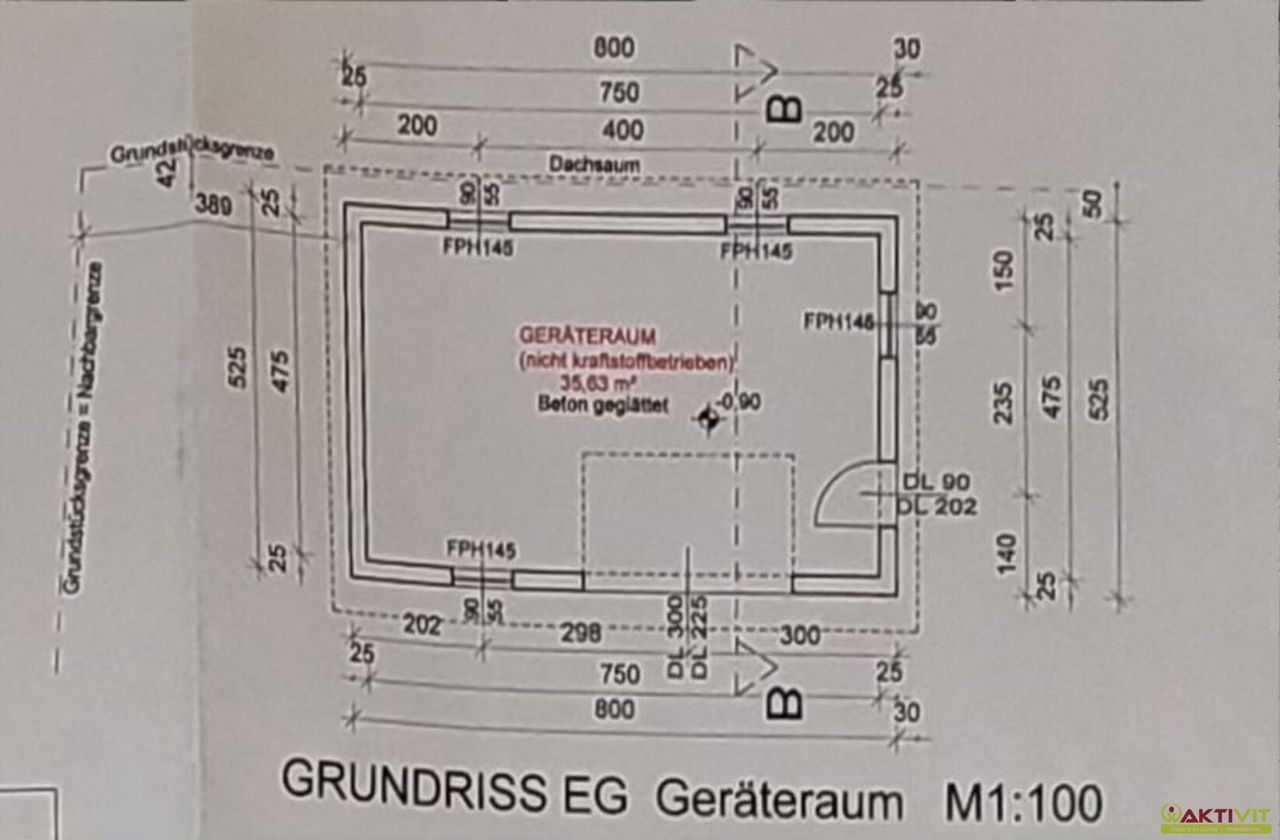 Zusätzlich steht ein separater Geräteraum mit ca. 35 m² zur Verfügung, der vielseitig nutzbar ist.
