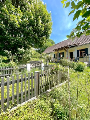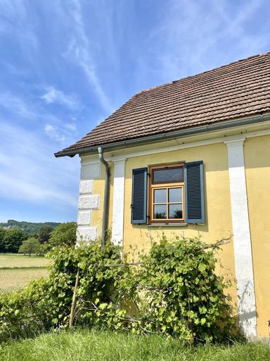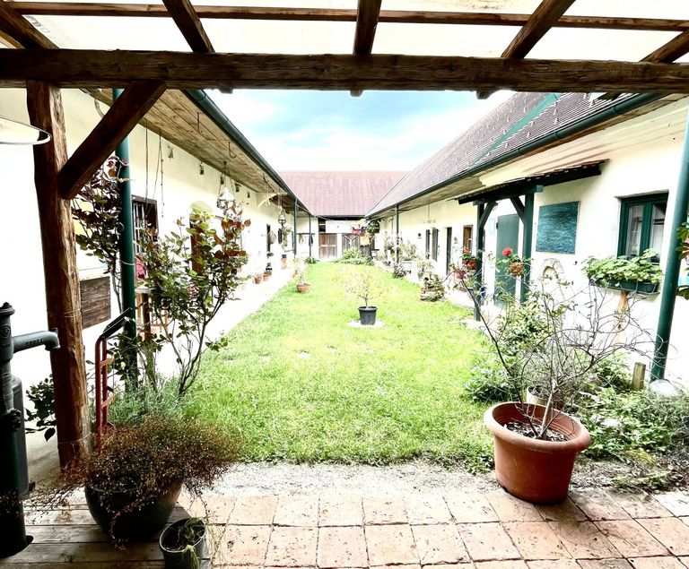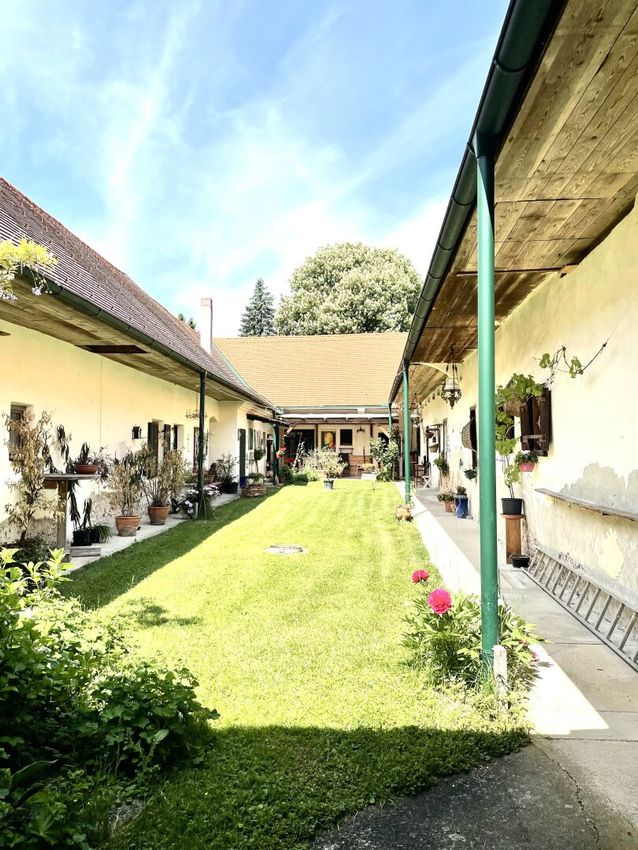 Um 1901 errichtet, werden Sie von der Architektur und Anlage dieses ehemaligen Meierhofs fasziniert sein: Stil, Charakter, Flair, der gut durchdachte Grundriss, die einzelnen Wohneinheiten, die verwendeten Materialien, die von Hand gemauerten Gewölbedecken, die antiken freiliegenden Sichttramholzdecken, die ehemaligen Stallungen und die Tenne, der Erd-/Weinkeller, der südwestseitig ausgerichtete Arkadengang mit dem traumhaften Fernblick, …!