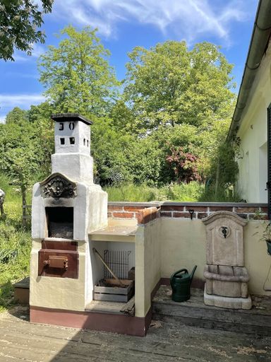 *Gemauerter Holzbackofen im Außenbereich vor der Küche;