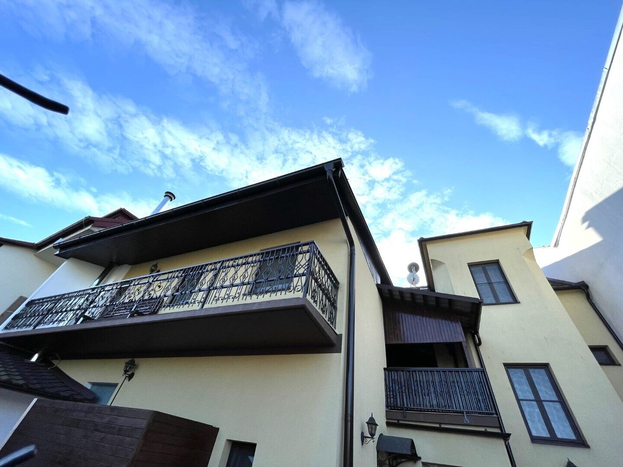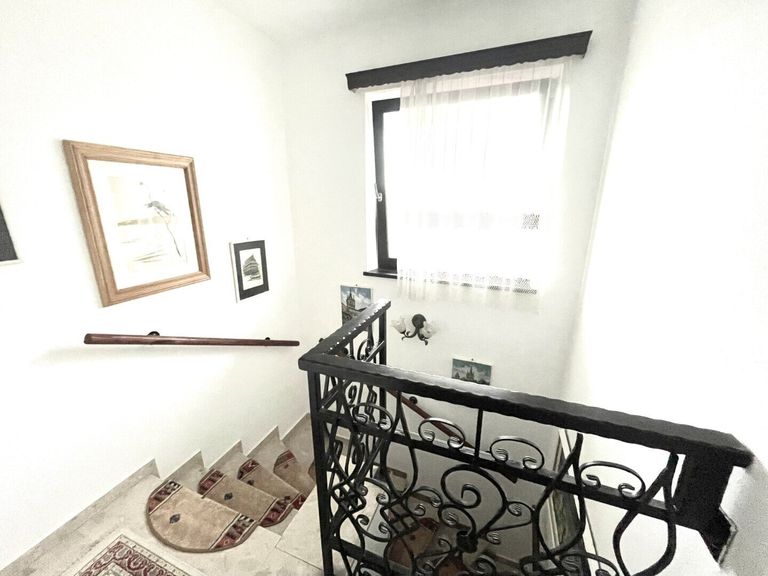 Insgesamt 1 Wohnküche, 5 Zimmer, 2 Badezimmer, 2 Extra WCs, 1 Vorzimmer, 3 Vorräume, 1 Stauraum, 2 Treppenaufgänge, 1 kleine Terrasse, 1 Balkon;