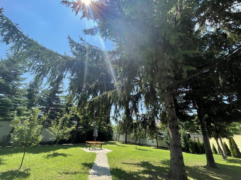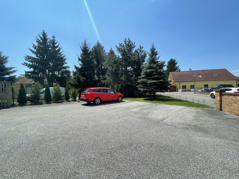 Der Garten mit dem gepflegten Rasen und den alten hohen schattenspendenden Bäumen ist eine kleine Oase für sich und bietet auch reichlich Platz für ein Swimmingpool, einen Naturschwimmteich, Kinderspielplatz und grenzt an den asphaltierten Hof mit ca. neun Parkplätzen und der Garage. Angrenzend befinden sich zwei weitere Garagen sowie drei weitere Parkplätze. In Summe sind dies drei Garagen sowie ca. 12 Parkplätze.