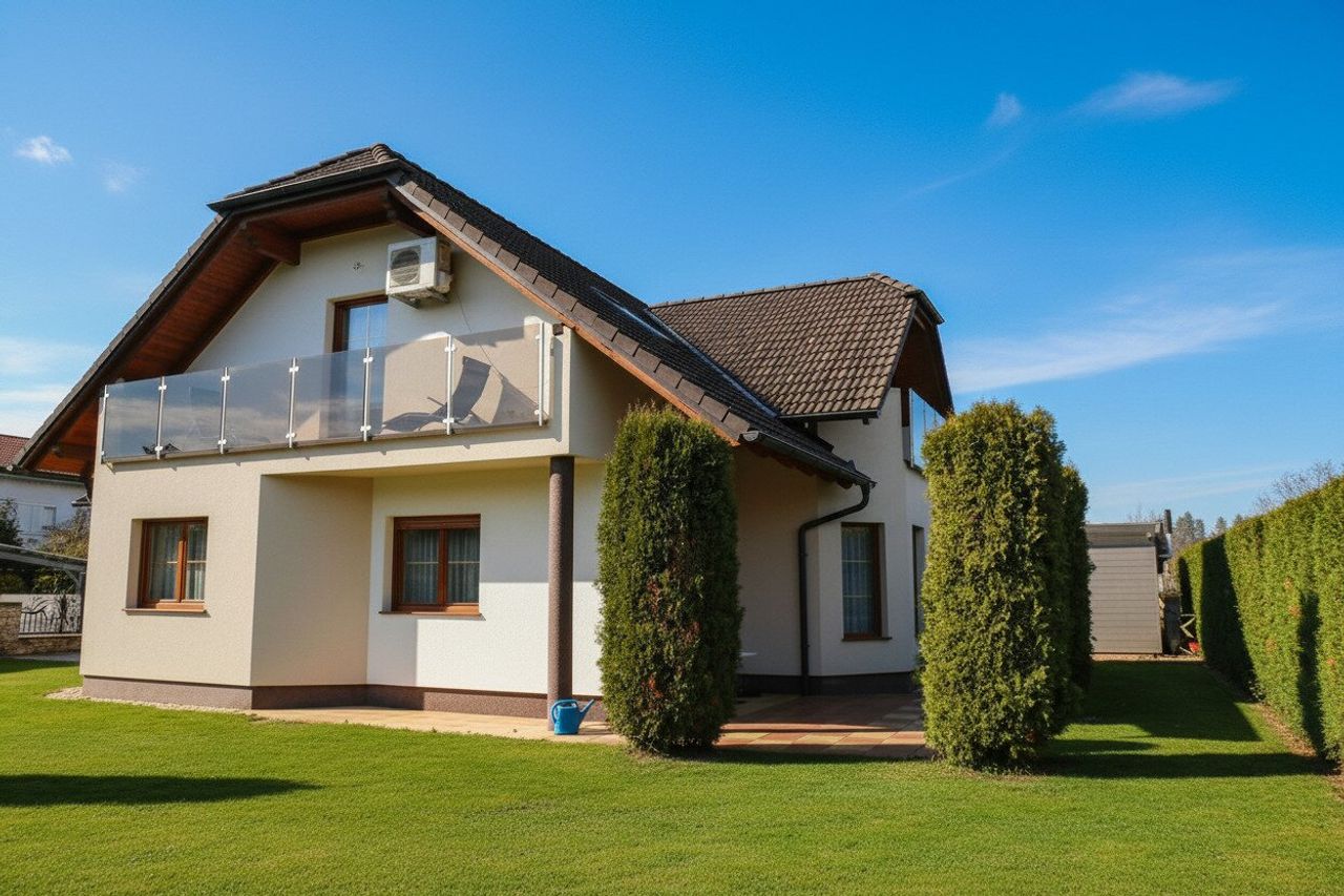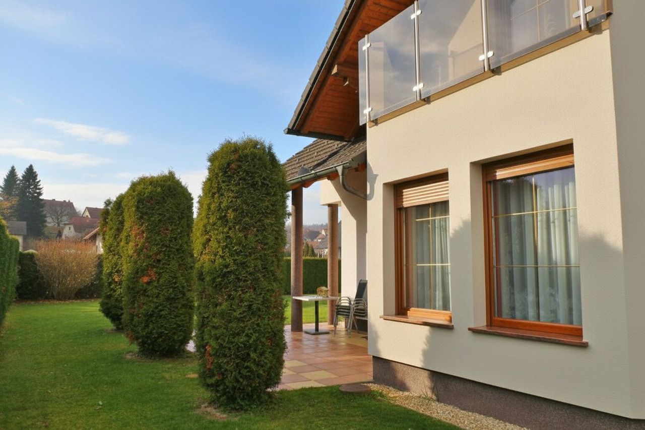 ein großzügiges Einfamilienhaus umgeben von einem schönen Garten