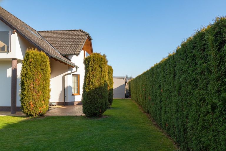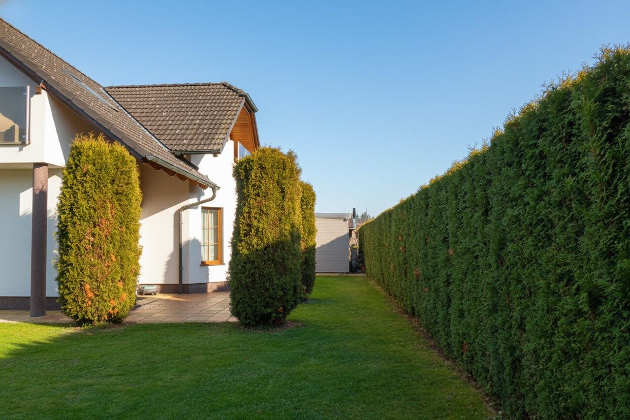 KOMPLETT EINGEZÄUNTES GRUNDSTÜCK- lebendiger Zaun & Schmiedeisenelemente