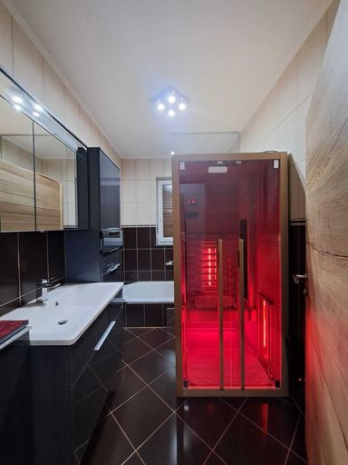 - Badezimmer möbliert mit Badewanne/Fenster und Infrarotkabine