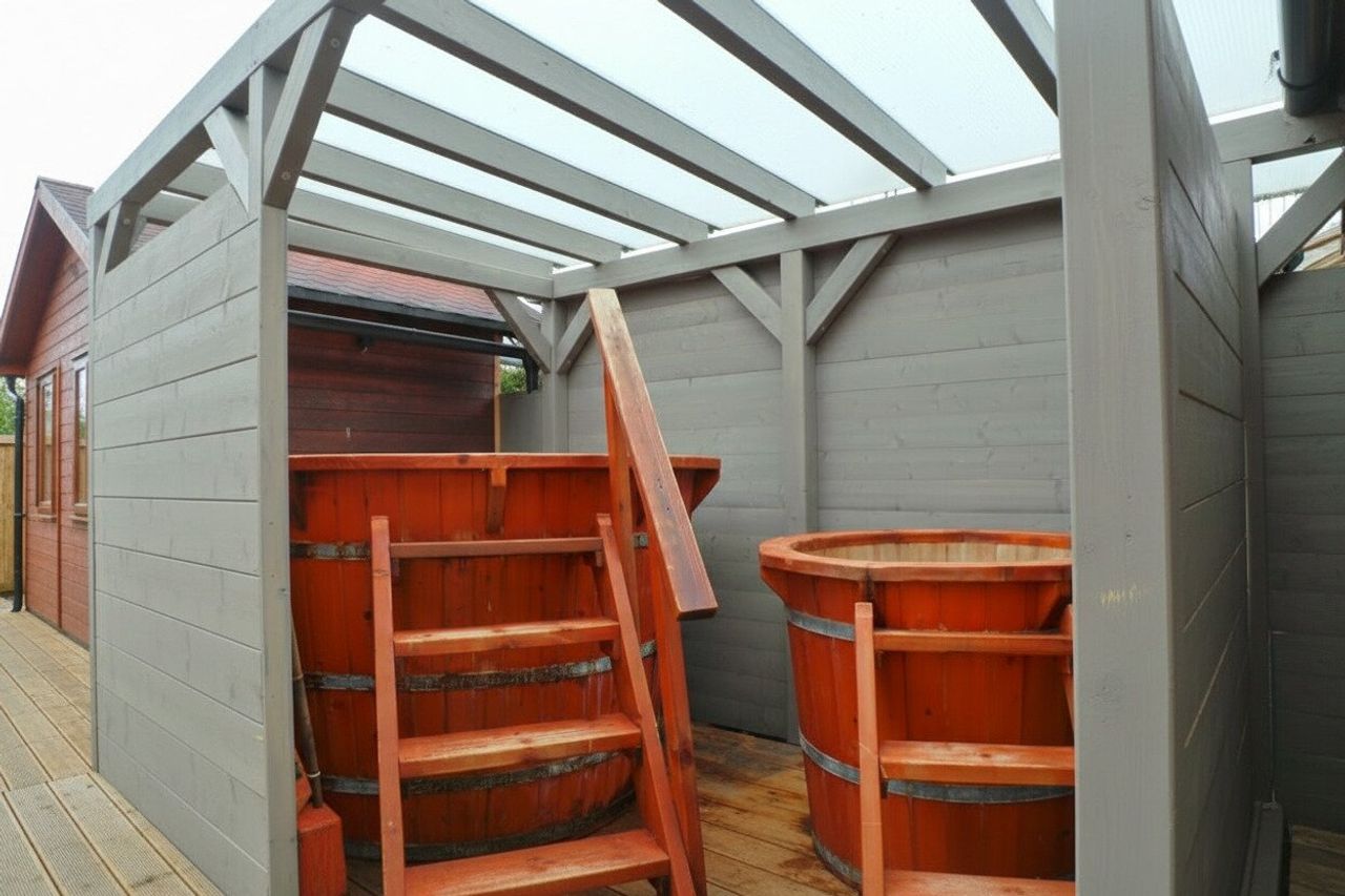 WELLNESS-OASE - Saunahaus mit Dusche & Holzbadefass