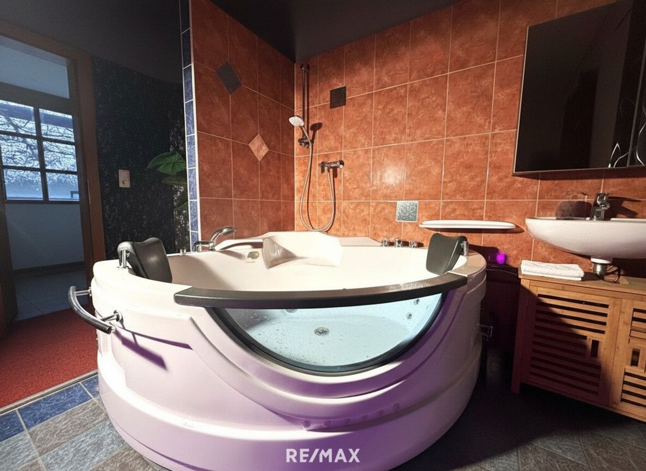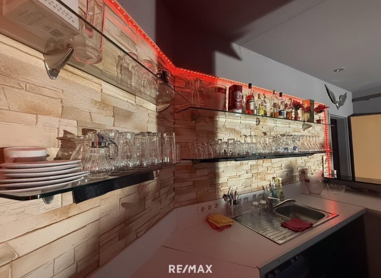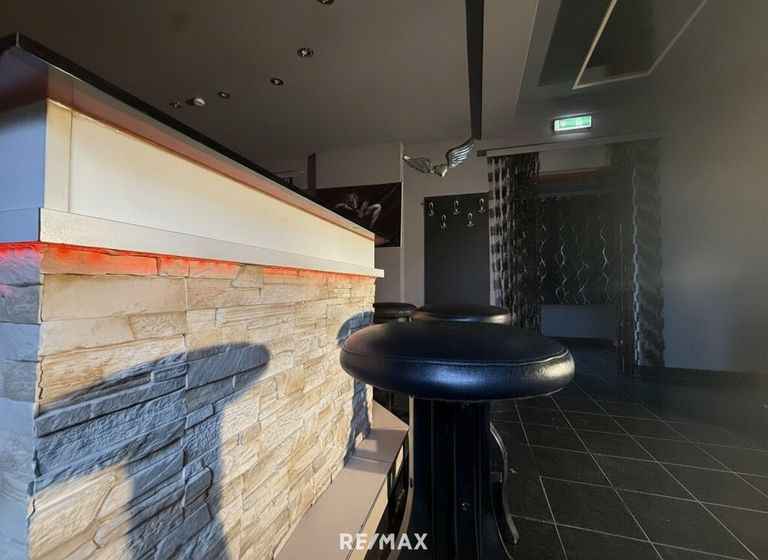 Im Erdgeschoss befindet sich ein großzügiger, offener Barbereich mit modernen Sitzlounges und einer Bar‑Lounge im Außenbereich. Getrennte Toiletten und ein Holzheizofen sorgen für Komfort und Atmosphäre – ideal für Gastronomie, Barbetrieb oder Veranstaltungsflächen.
