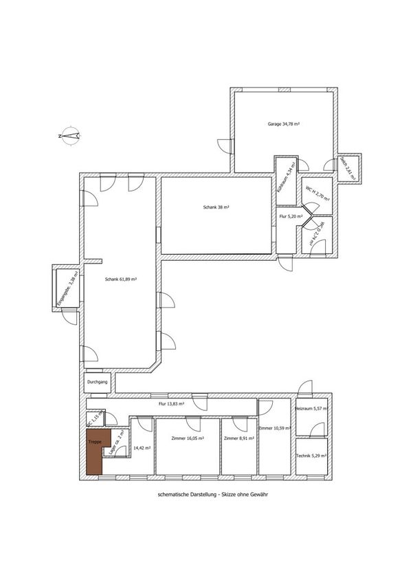 - Nutzfläche: ca. 300 m² – offen, funktional und gut nutzbar