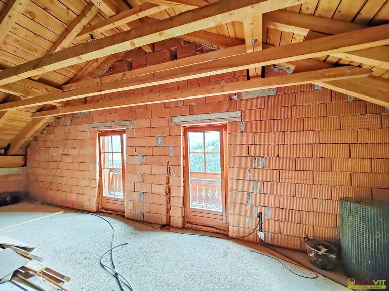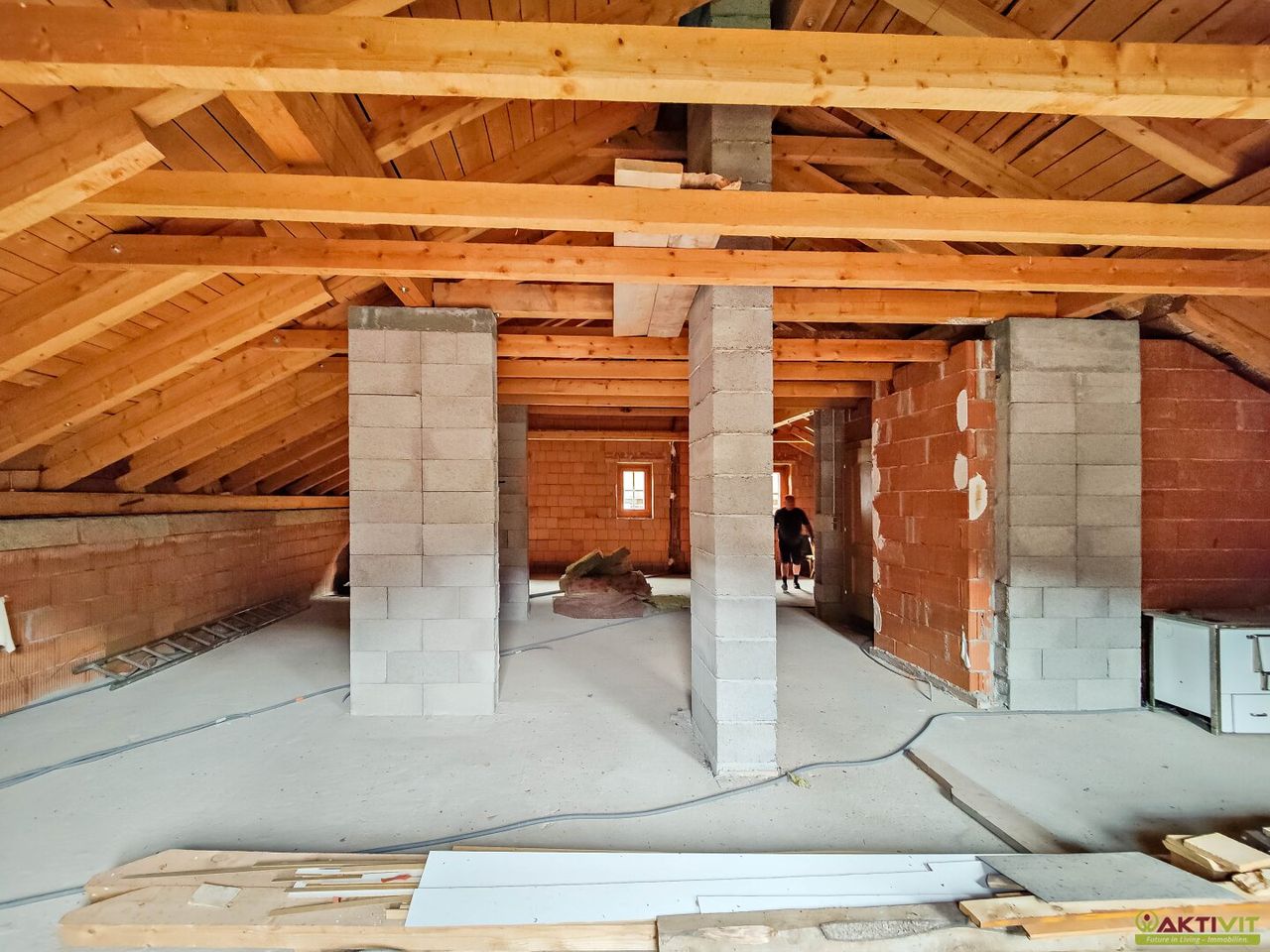 Der Rohdachboden ist zum Teil bereits für den Ausbau vorbereitet.