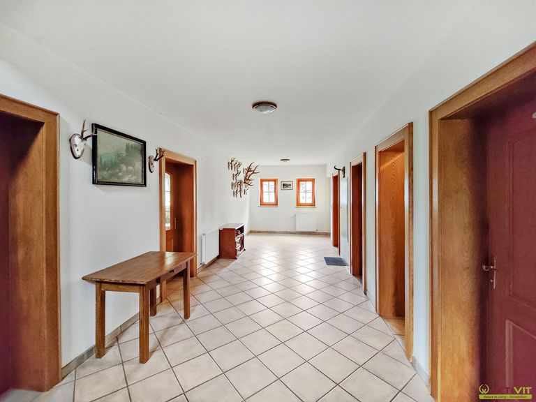 - Im Erdgeschoß: Vorraum, Gang, Wohnzimmer, große Küche mit Ess-Bereich, ein Zimmer, Bad, getrenntes WC, Abstellraum (Speis) und Wirtschaftsraum.