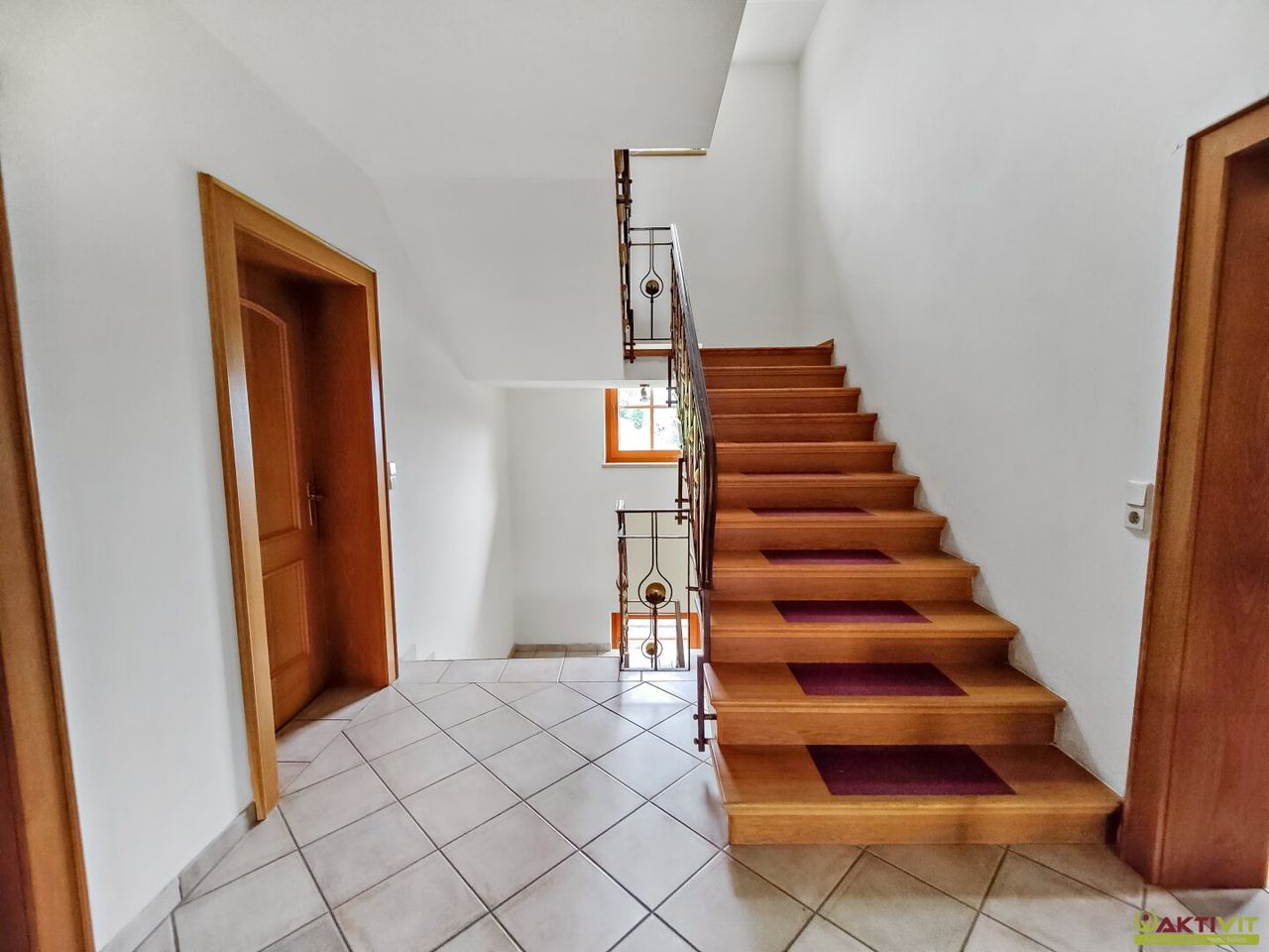 Das Haus verfügt über Parkett- und Fliesen-Böden sowie Holzfenster mit Dreifach-Verglasung.