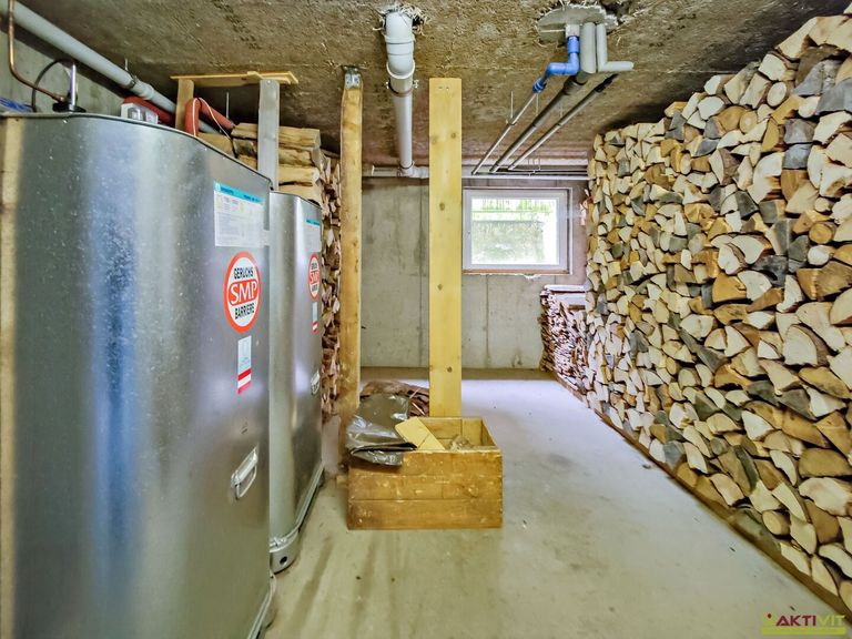 Davon dient ein Raum für Heizungstechnik und ein Raum als Heizraum und Brennstoff-Lager.