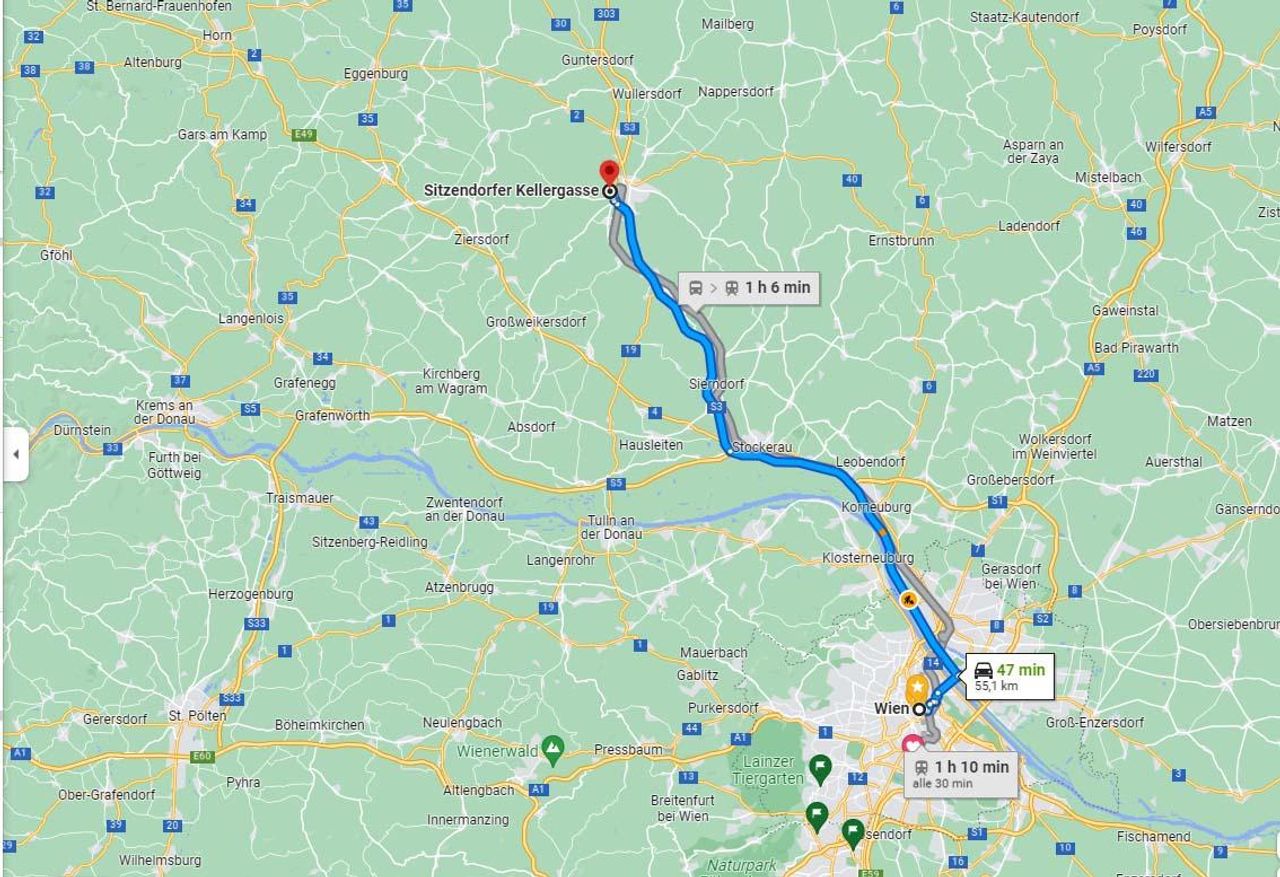 Mit dem Auto von Wien über die A22 und S3 ca. 50 min