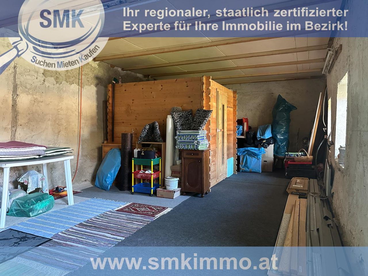 Ein gemauerter Stadl mit elektrischem Garagentor teilt das Grundstück in zwei Bereiche. Dahinter eröffnet sich ein weiterer, ruhiger Grundstücksteil mit Garten, der zusätzlichen Freiraum zum Entspannen, Gärtnern oder Gestalten bietet.